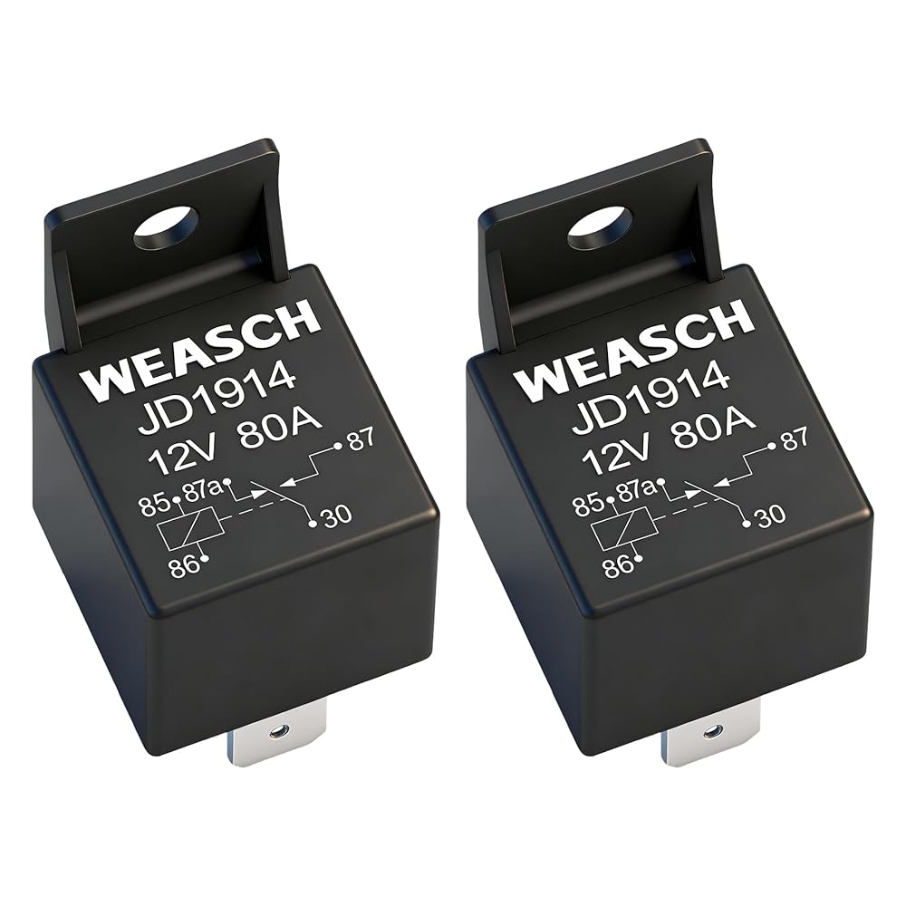 2 Pack JD1914 Car Relay, 12V 80A, 5 Pin SPDT, Automotive Switches and Starters, Waterproof Relay for Boat Tractor Truck Motorcycle (2)