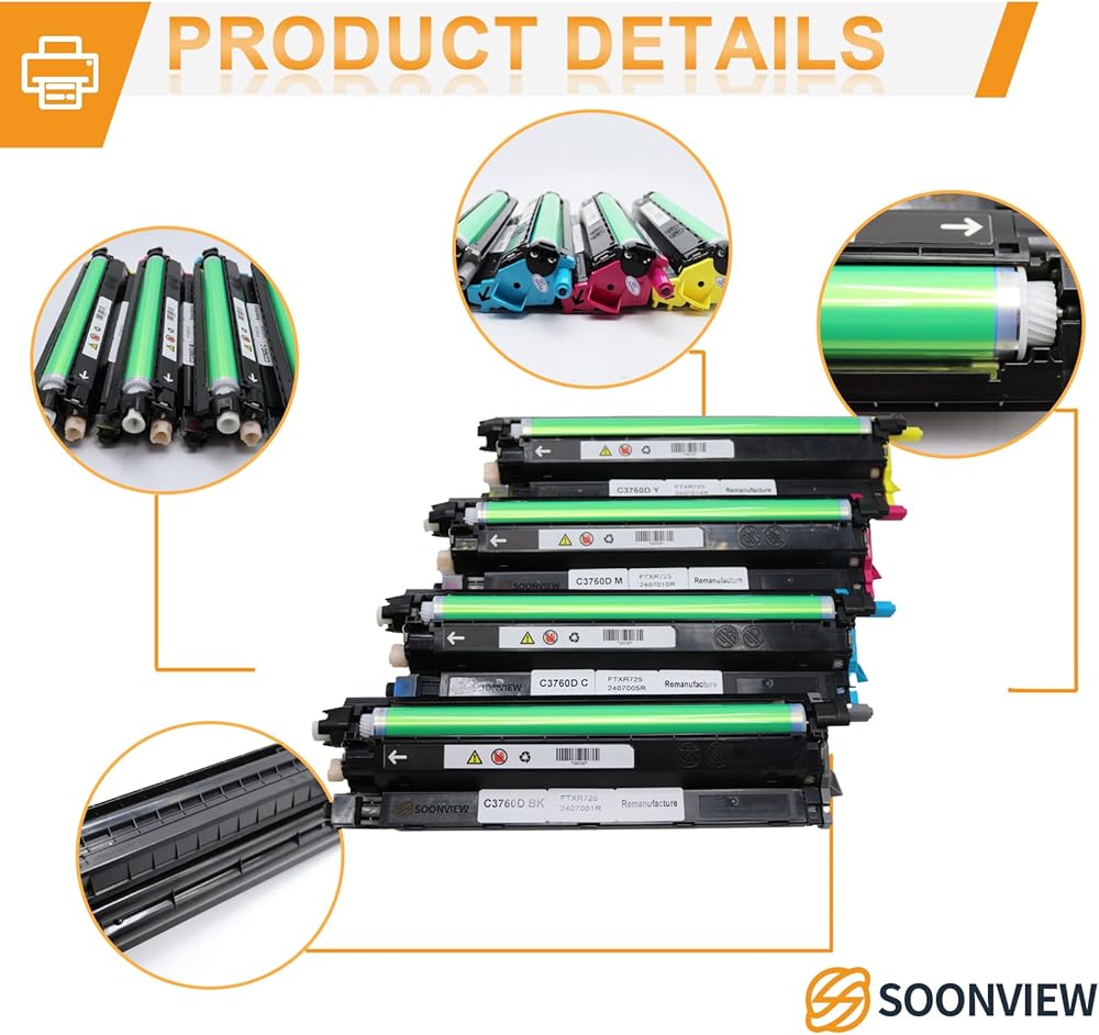 High Performance: Our high yield C3760D C2660 S3840 TWR5P 593-BBEJ Drum Unit deliver superior printing results with vivid colors and clear prints, use for schools, hospitals,companies,and factories.