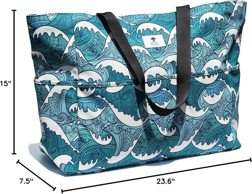 2.Super Capacity:23.6 x 7.5 x 15 inches, it can hold all your beach stuff, like beach towel, beach hat, coke, wallet, flip flops, sunglasses, swimsuit and sunscreen.