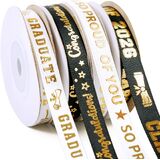 2 Rolls 20 Yards Graduation Ribbon 3/8 Inch Wide, Congrats Grad White Black Grosgrain Ribbons for Gift Wrapping Class of 2026 Graduation Party Decorations DIY Crafts