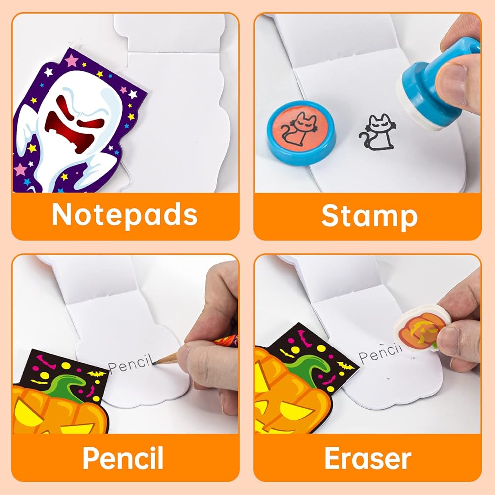 【Enjoy Trick Or Treat Fun】Halloween party favor stationery set, great choices to trick or treat. Perfect Halloween supplies for kids, dress up in costumes and ring neighbors doorbells, making the traditional "Trick or Treat" threat! Let kids enjoy the atmosphere and joy of Halloween.