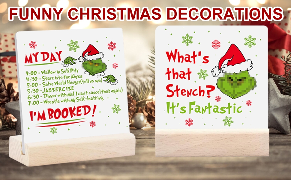 Wood and Ceramic - these Christmas sign table decorations are made of ceramics, totally safe for your family, and each of the ornaments is designed with a wood base, to keep them stable on your table; Note: the slot of the wooden base may be a little tight and you can push the wooden topper into a slot.