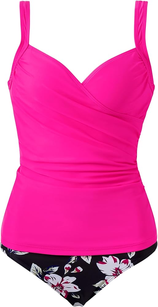 MOOSLOVER Women Twist V Neck Tankini Swimsuits High Wasited Two Piece Bathing Suits Swimwear
