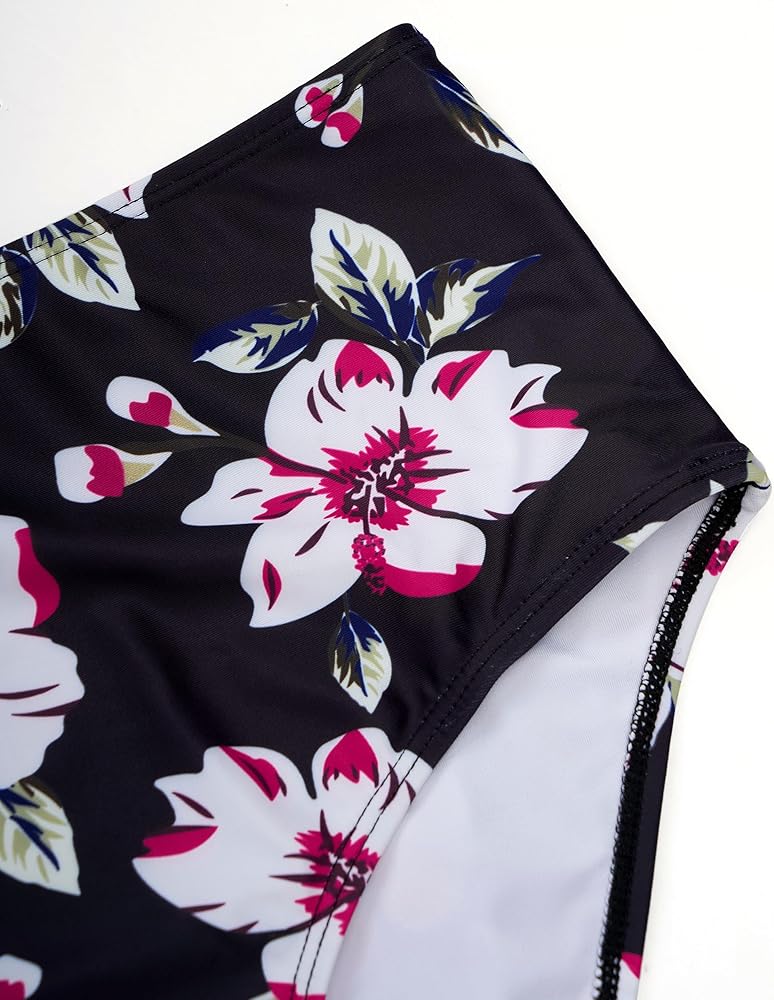 - Feature: Twist V neck retro tankini top, modest high waisted tankini bottom, removable padding, adjustable shoulder straps.