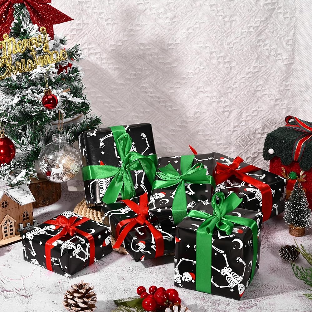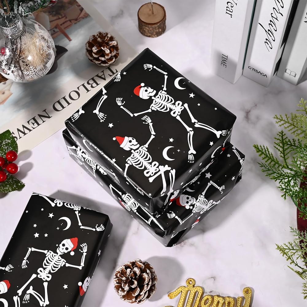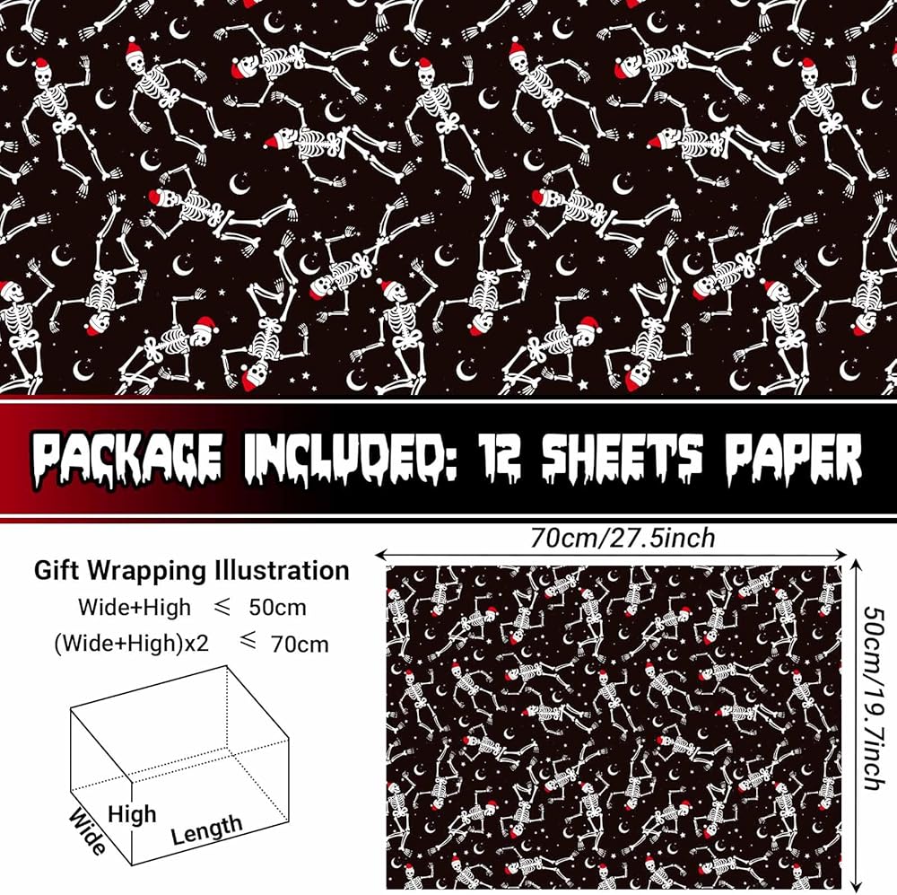 【PACKAGE CONTENT】You will get 12 sheets of dancing skeleton wrapping paper totally, sufficient to meet your needs for Christmas gift wrapping and decoration needs.