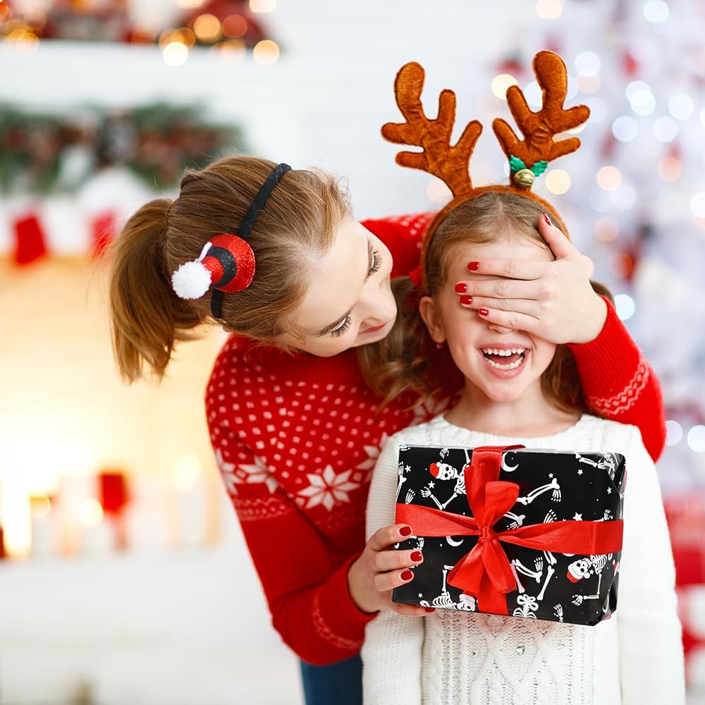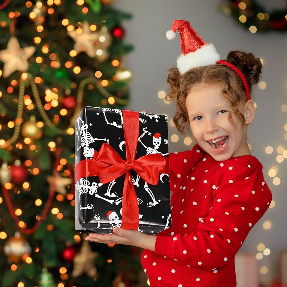 【SIZE INFORMATION】Each sheet of christmas skeleton wrapping paper measures about 50 x 70cm/19.7 x 27.5 inches, fitting most sizes of gift boxes. You can also cut them into proper size at will, very convenient and practical.