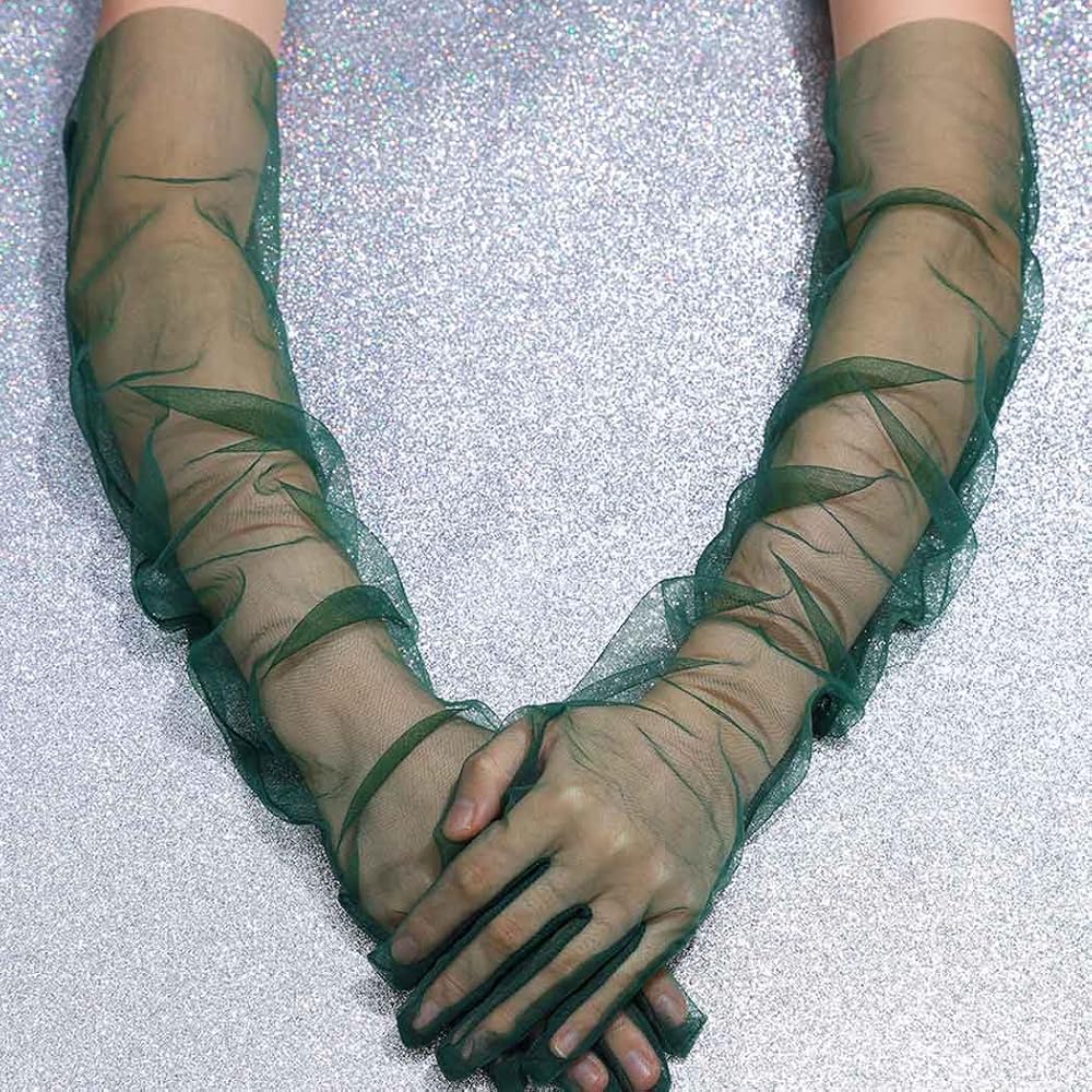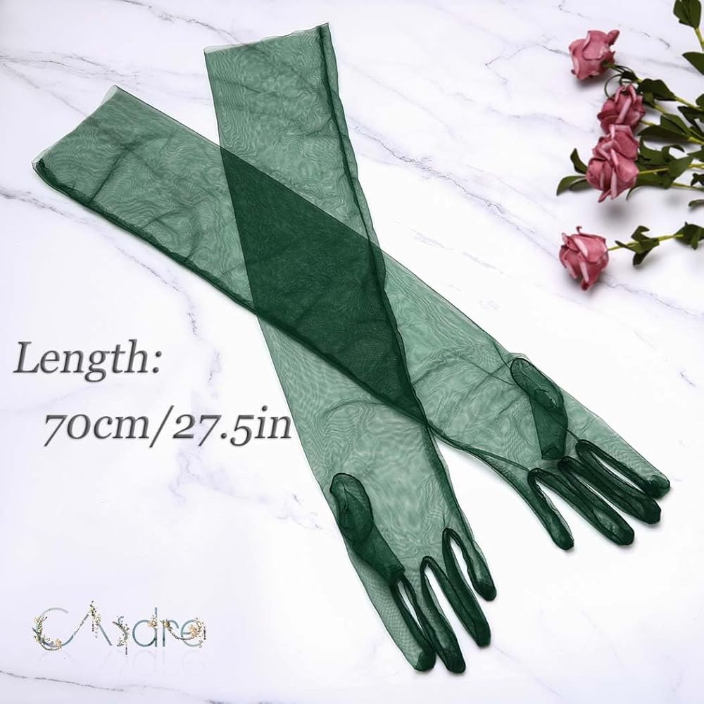 CASDRE Long Tulle Gloves Elbow Length Bridal Arm Sleeves Prom Halloween Costume Sheer Gloves for Women