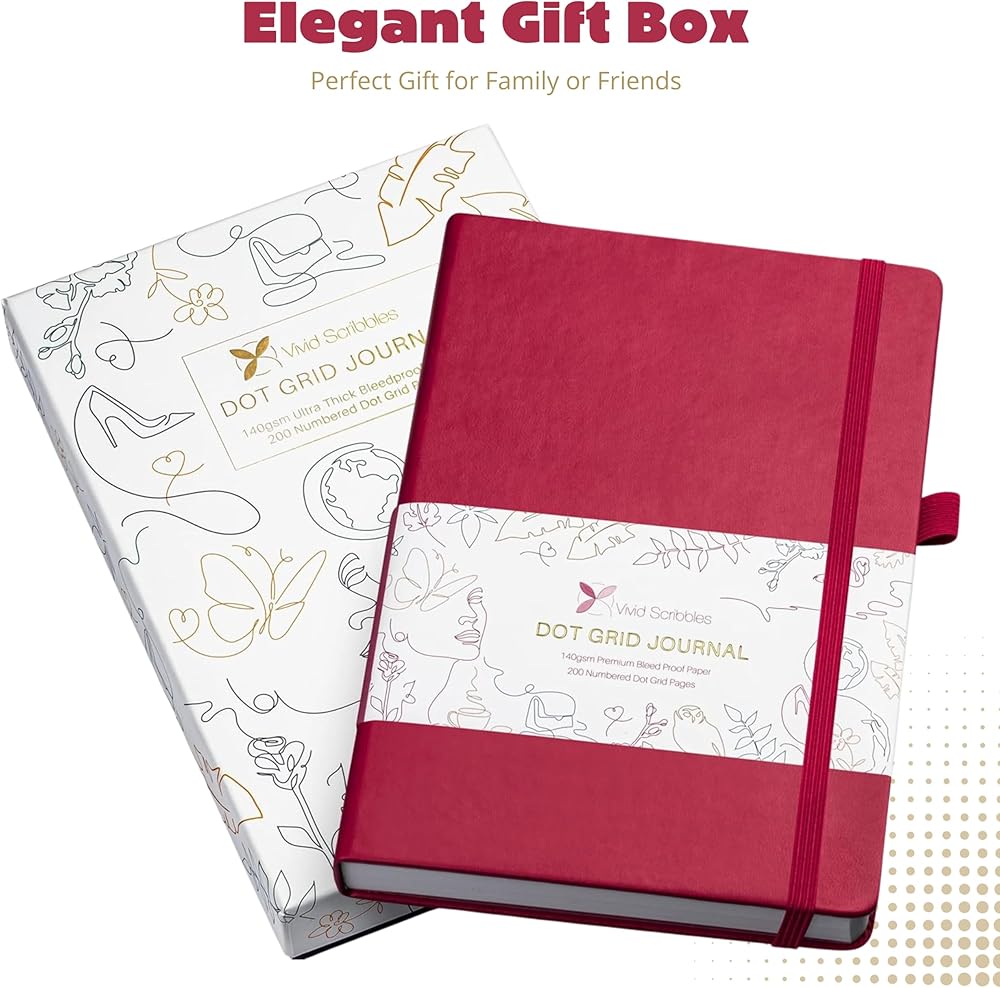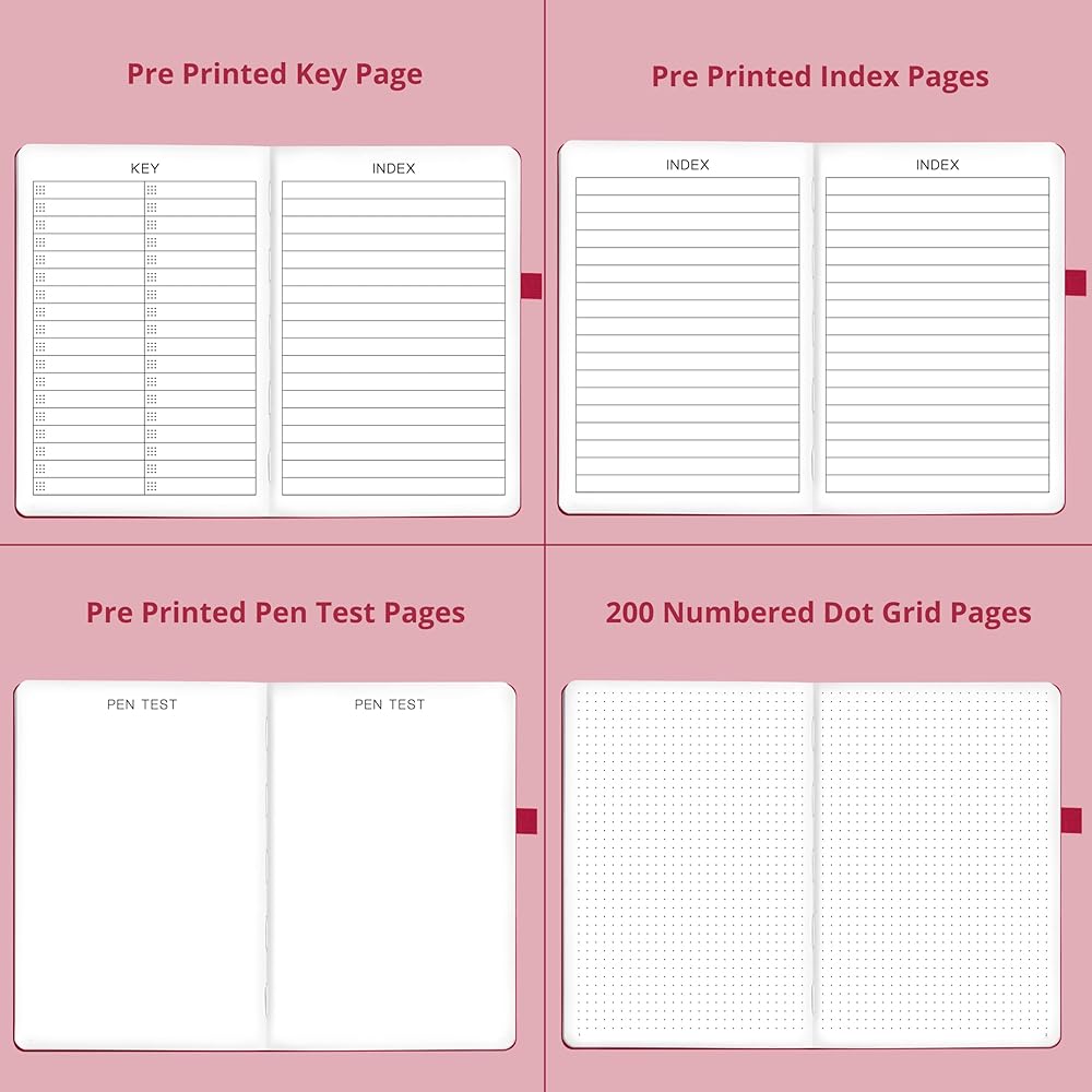 PREMIUM 140 GSM PAPER FOR BULLET JOURNALING AND CREATIVITY: This A5 dotted notebook features thick, acid-free paper; perfect for bullet journaling, note-taking, sketching, and organizing ideas without ink bleed-through. The dot grid notebook layout ensures precision for all types of uses.