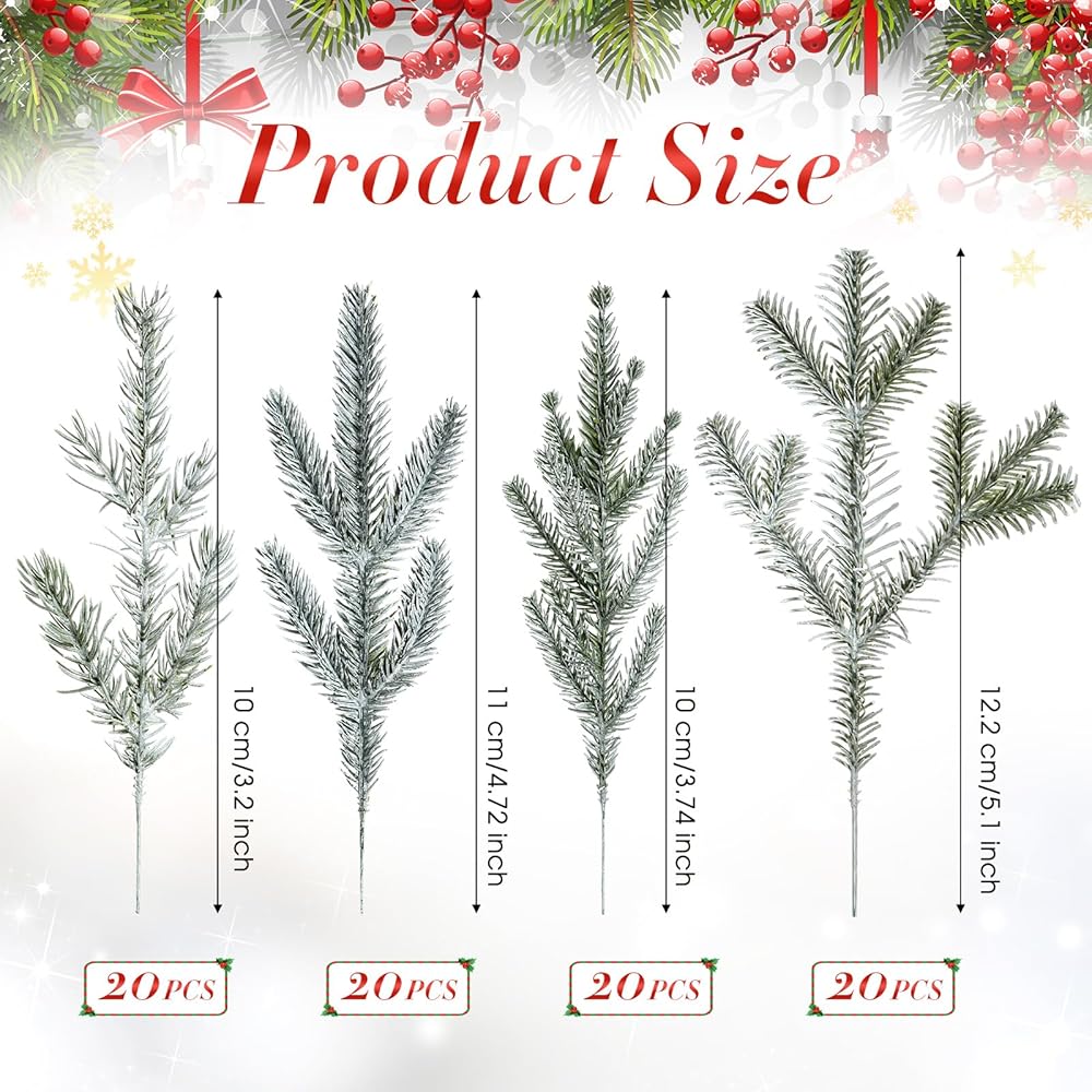 Enhance your holiday decor with our set of 80 Christmas artificial pine branches, featuring 4 distinct styles and sizes.