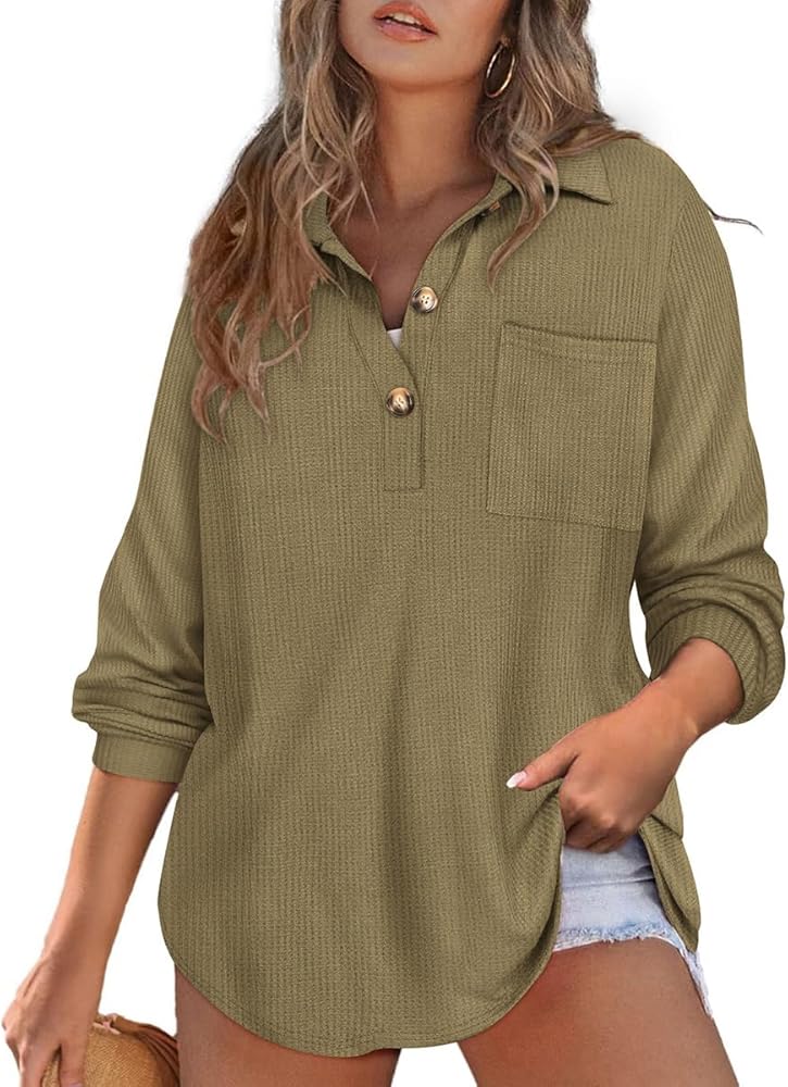 Waffle Knit Fabric: Made of 97% Polyester,3% Spandex, Ritera plus size long sleeve top for women is made of soft,skin-friendly, lightweight and breathable knit fabric that is both durable and comfortable.
