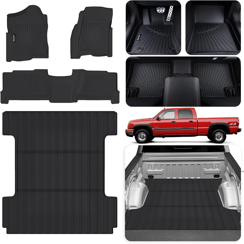 Floor Mats & Large Trunk Mat for 1999-2006 Chevy Silverado GMC Sierra Crew Cab 1500 2500 2500HD 3500HD, 2007 Silverado GMC Sierra Classic Body, Floor Mats & Trunk Bed Liner