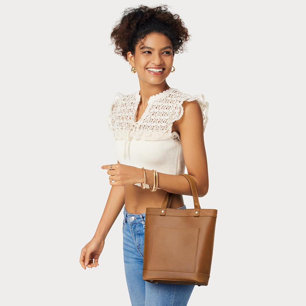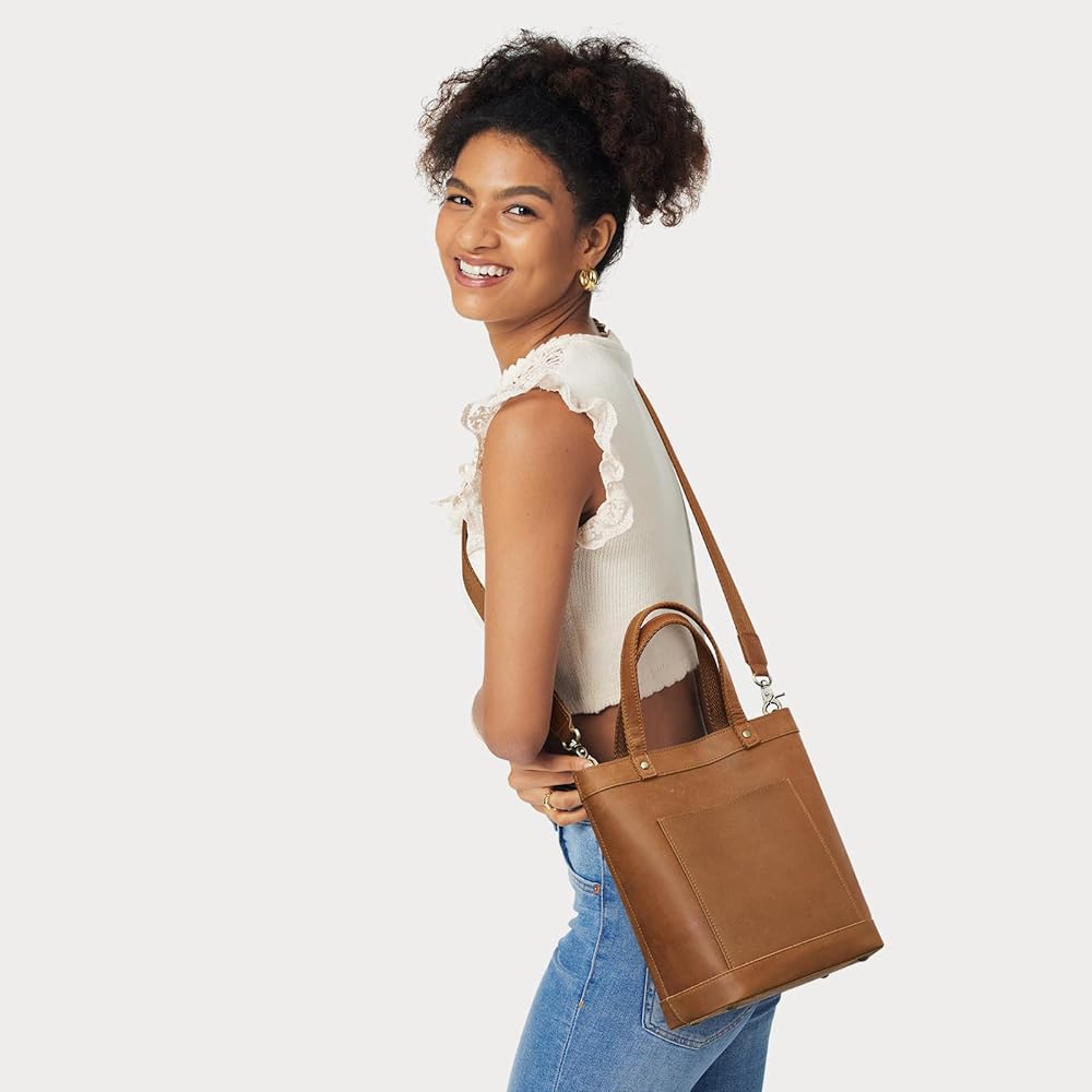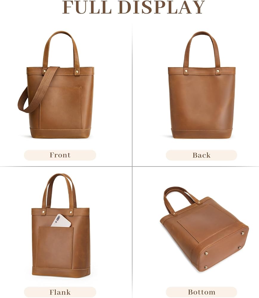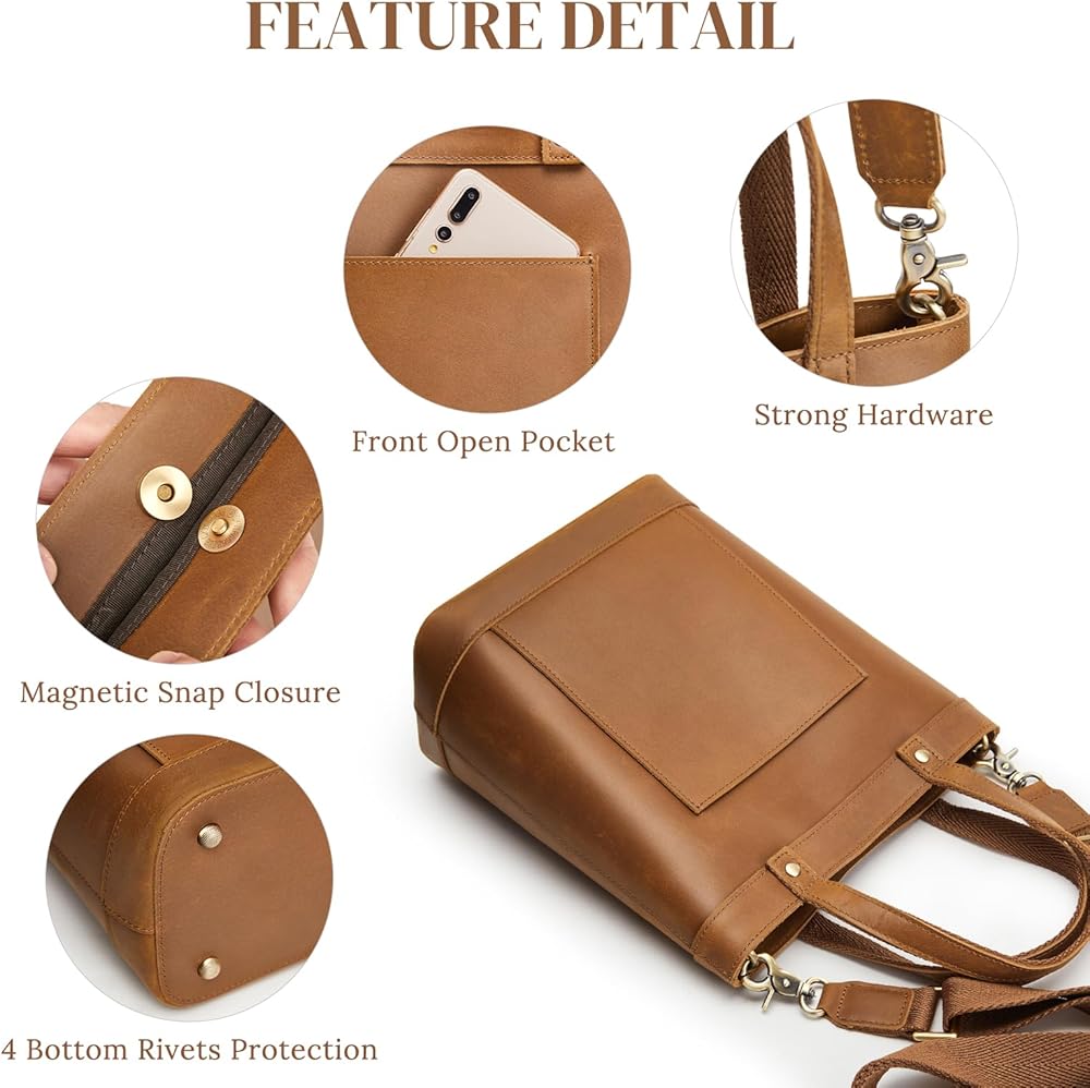Convertible Style: This simple and stylish mini leather tote bag comes with fixed top handles(Drop: 5.1” ) and a removable and adjustable widened canvas shoulder strap (Length: 34.6” - 58.3”), easily transforming from top-handle handbags, cross body totes or shoulder purses