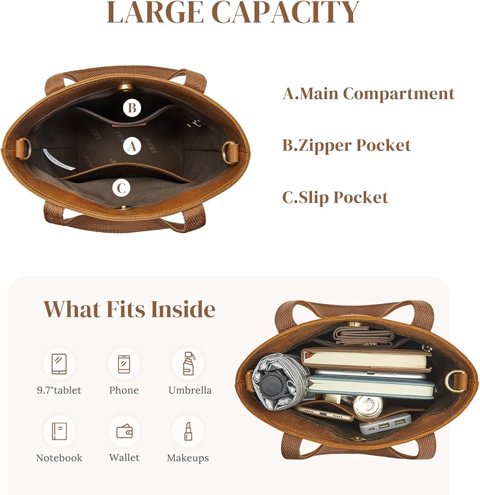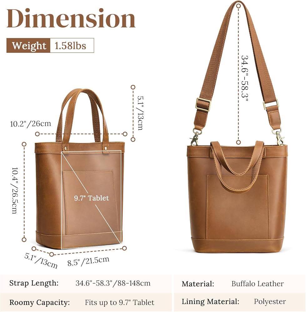 Roomy Capacity: This shoulder purse external dimension is about 10.2”(Upper Length) x 8.5”(Bottom Length) x 5.1”(W) x 10.4”(H); Fits up to 9.7” Tablet; Net weight: 1.5lbs. It can hold your essentials, including wallet, phone, umbrella, magazine and makeups, bringing convenience to your daily travel