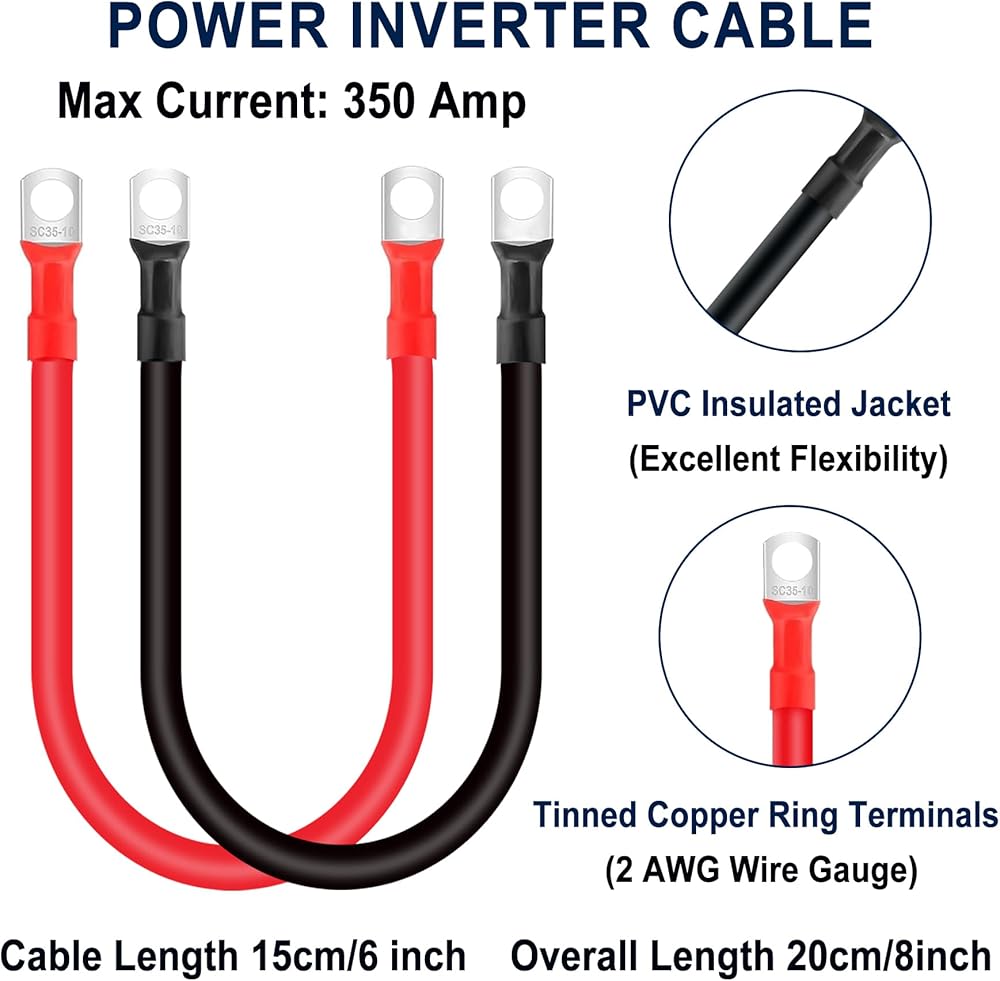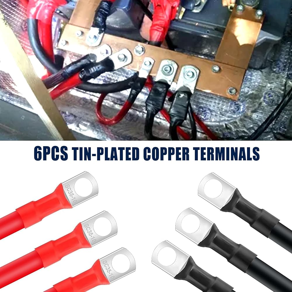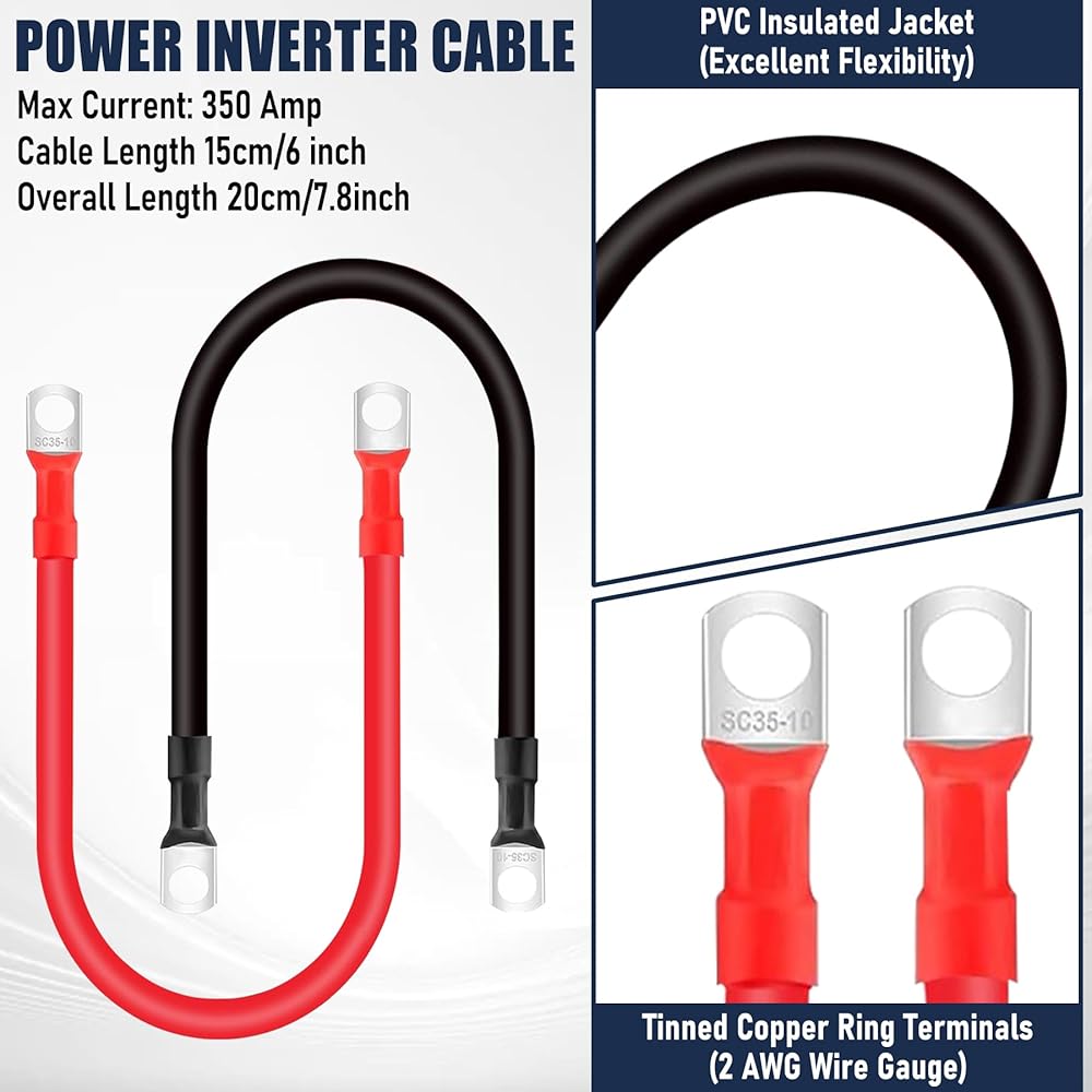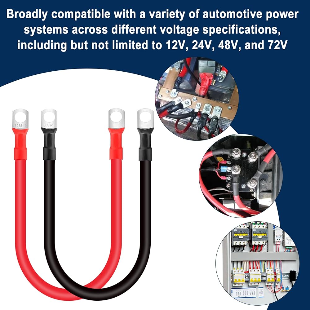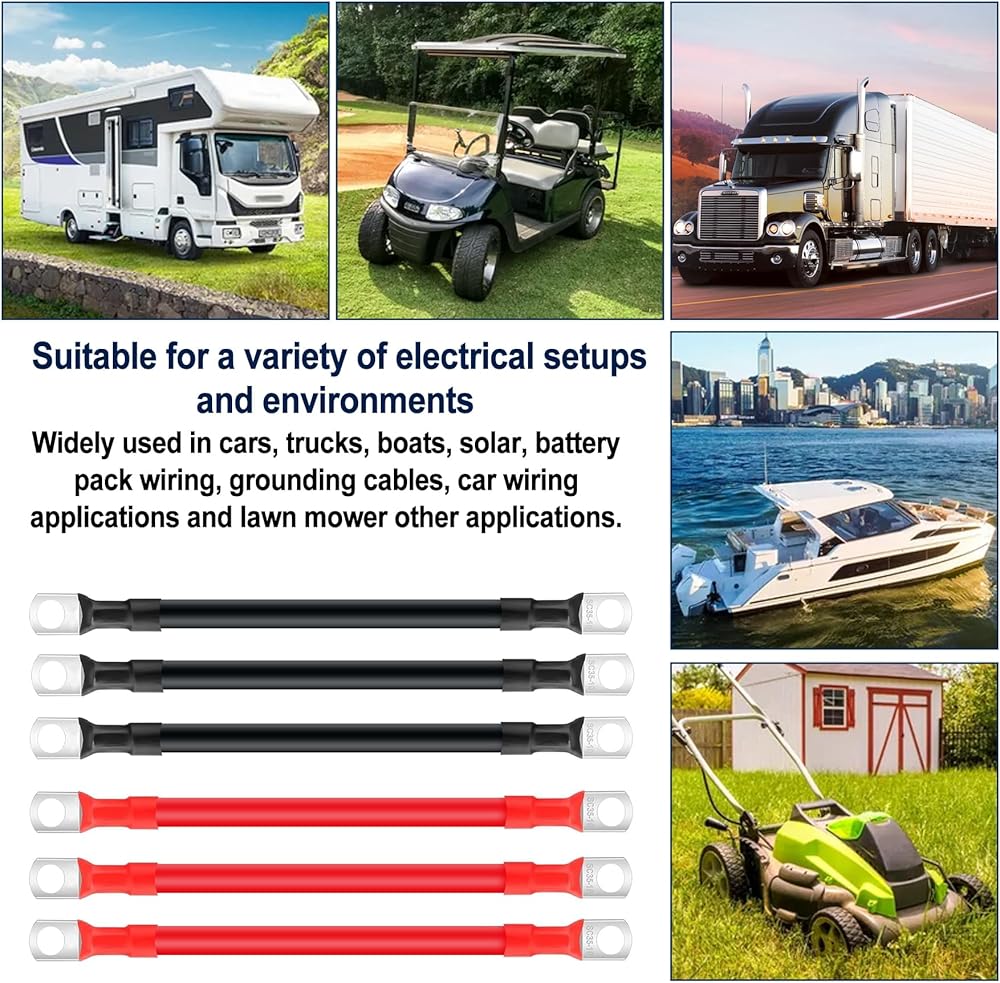 【Widely Applications 】:The application of inverter cables extends to various domains including automotive, marine, solar power systems, battery packs, grounding connections, and wiring for cars and lawn mowers. It is essential to select the appropriate cable length and lug mounting hole size for optimal performance.