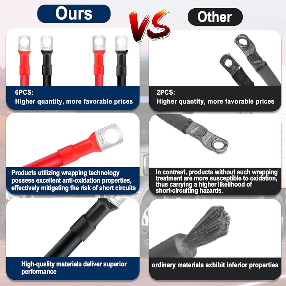 【Protective cover】:The cables are equipped with a flexible PVC (polyvinyl chloride) sheath, providing battery cable insulation that is wear-resistant, waterproof, moisture-proof, flame-retardant, and heat-insulating. They can withstand the rigorous demands of automotive or marine environments. Please feel confident in your purchase.