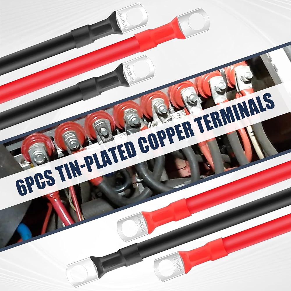 2 AWG Battery Cables with Terminals, 7.8 Inch 6PCS Auto Battery Cable with 3/8" Lugs Terminals Copper Wire,Red and Black Battery Cables Wire for Car Marine Solar Motorcycle ATV RV Marine Motorcycle