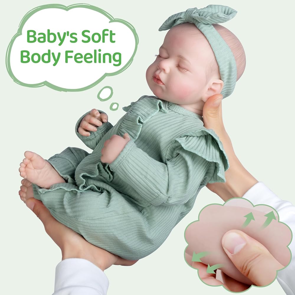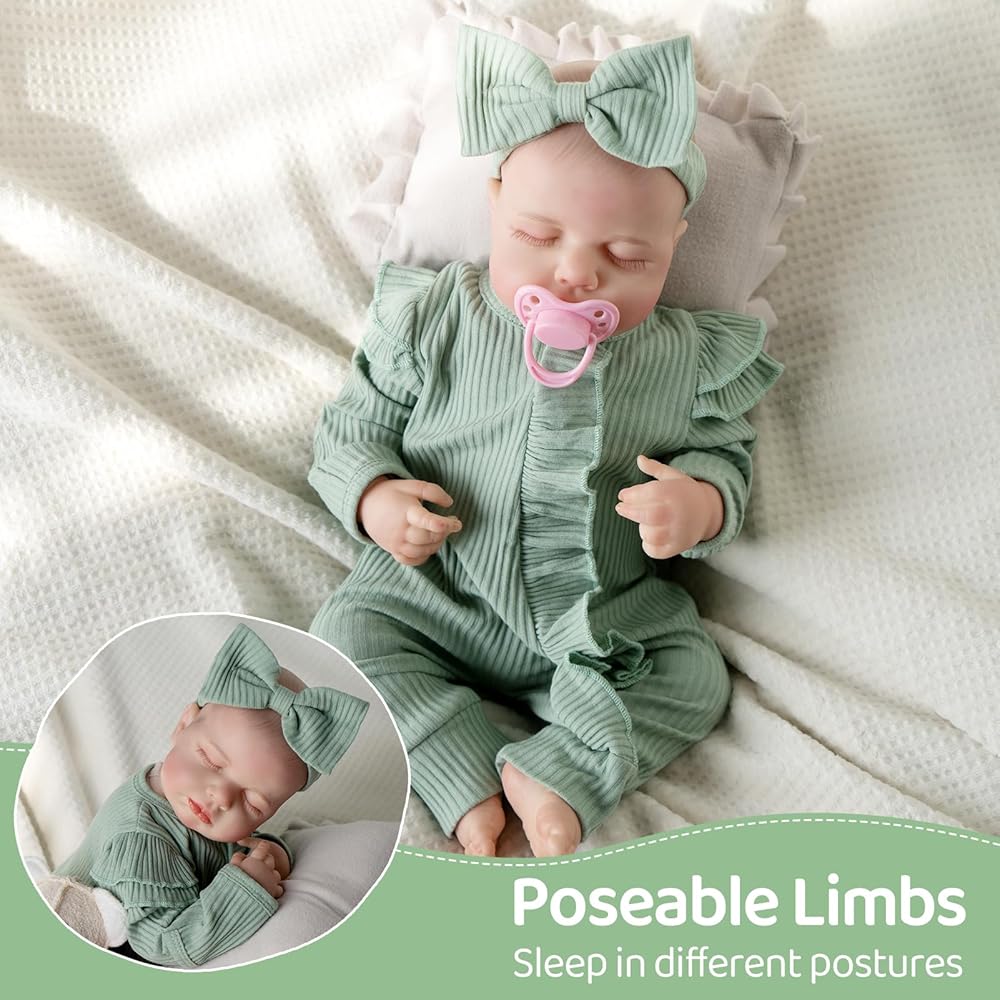 Newborn-Baby Doll: The 18'' sleeping reborn baby doll girl, exudes comforting innocence. Her rosy lips and long eyelashes invite cuddles. Cradled in your arms, the realistic reborn baby embodies love and warmth, perfect for nurturing play and creating cherished moments together.
