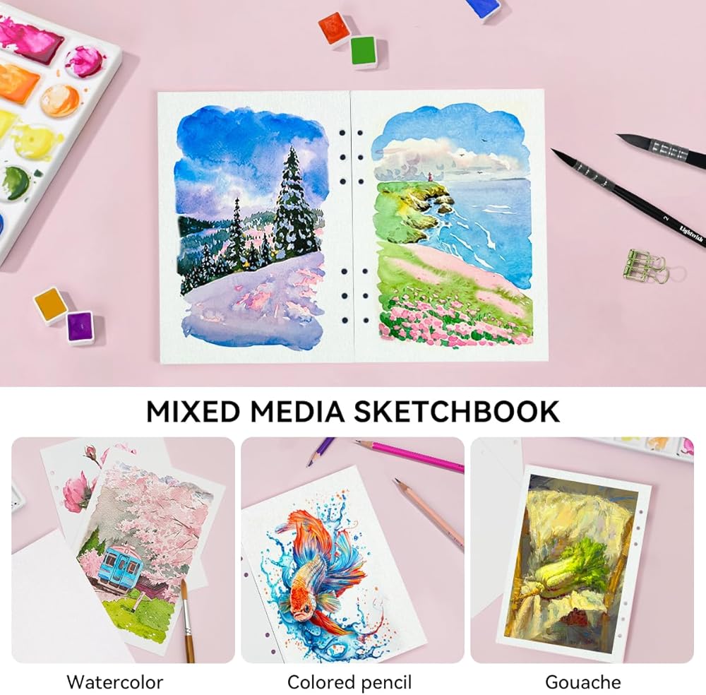 A5 Interchangeable Paper: These hole-punched sheets are designed for easy replacement in LIGHTWISH watercolor books, providing flexibility to update your collection effortlessly.