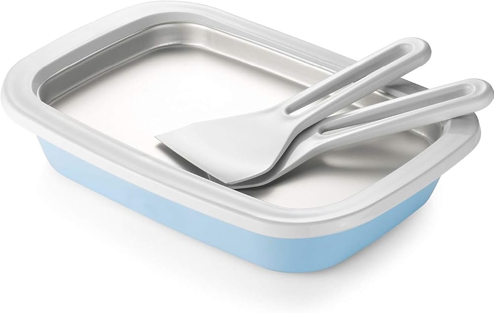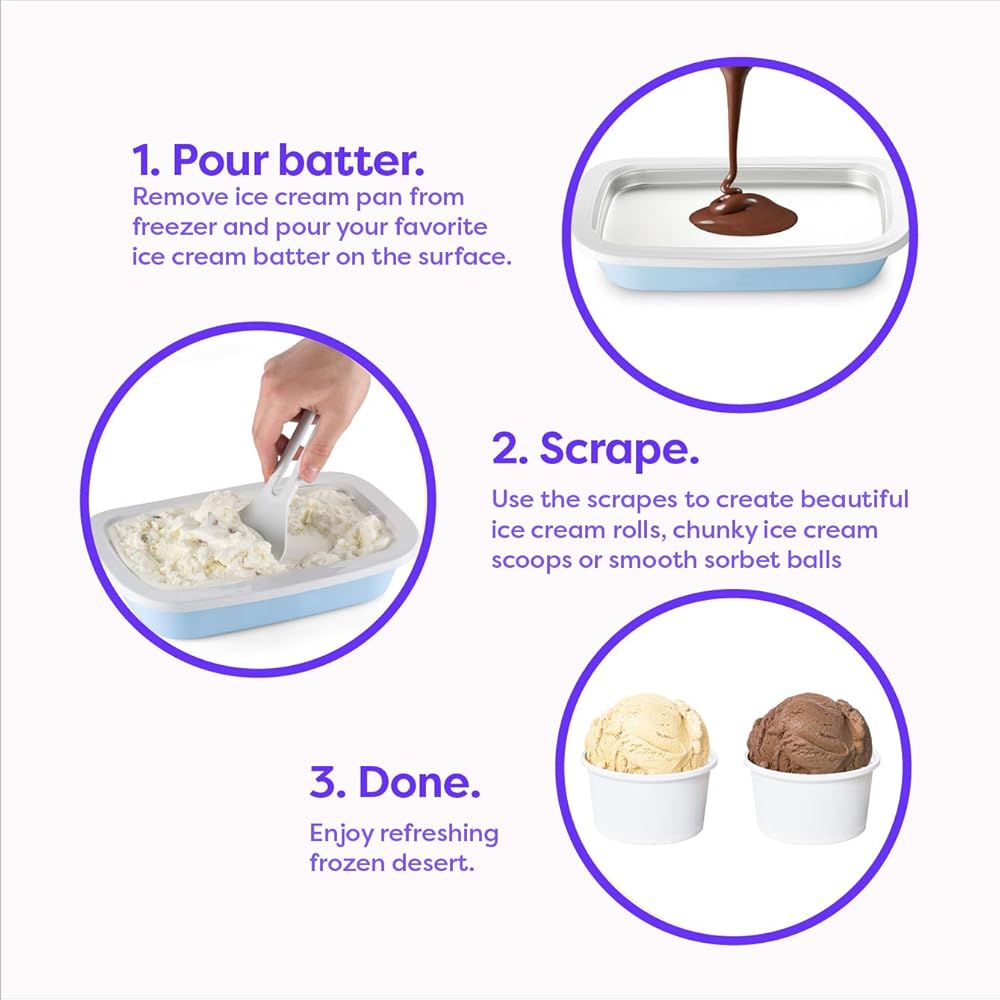Use the included hand tools to scrape and turn the ice cream mixture until it's completely frozen. Thanks to the non-skid bottom, the pan will stay completely still while you stir the ice cream!