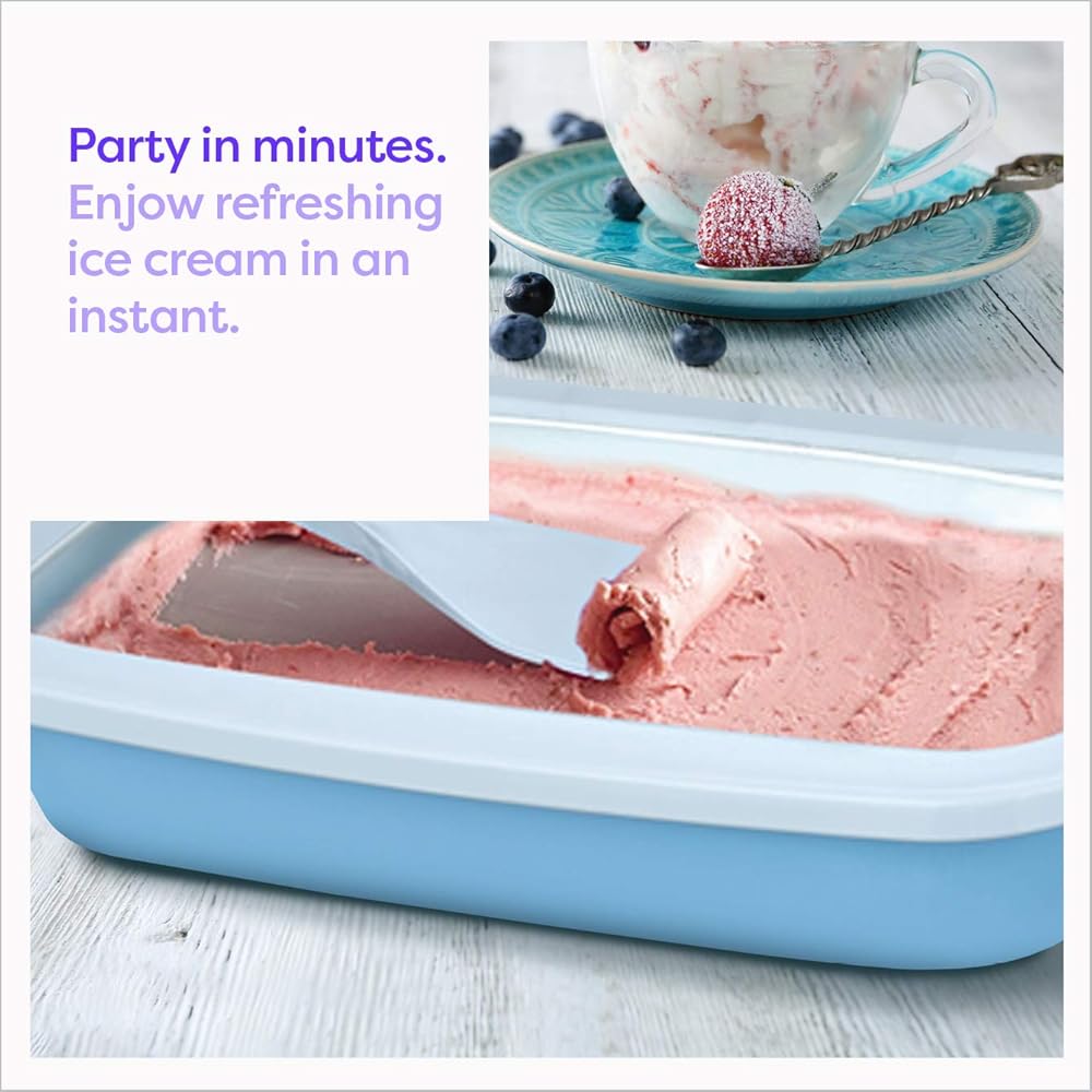 Add fruit, chocolate, nuts, cookies or candy to make the recipe your own. Create beautiful ice cream rolls, chunky ice cream scoops or smooth sorbet balls. Your ice cream will be ready to eat within minutes!