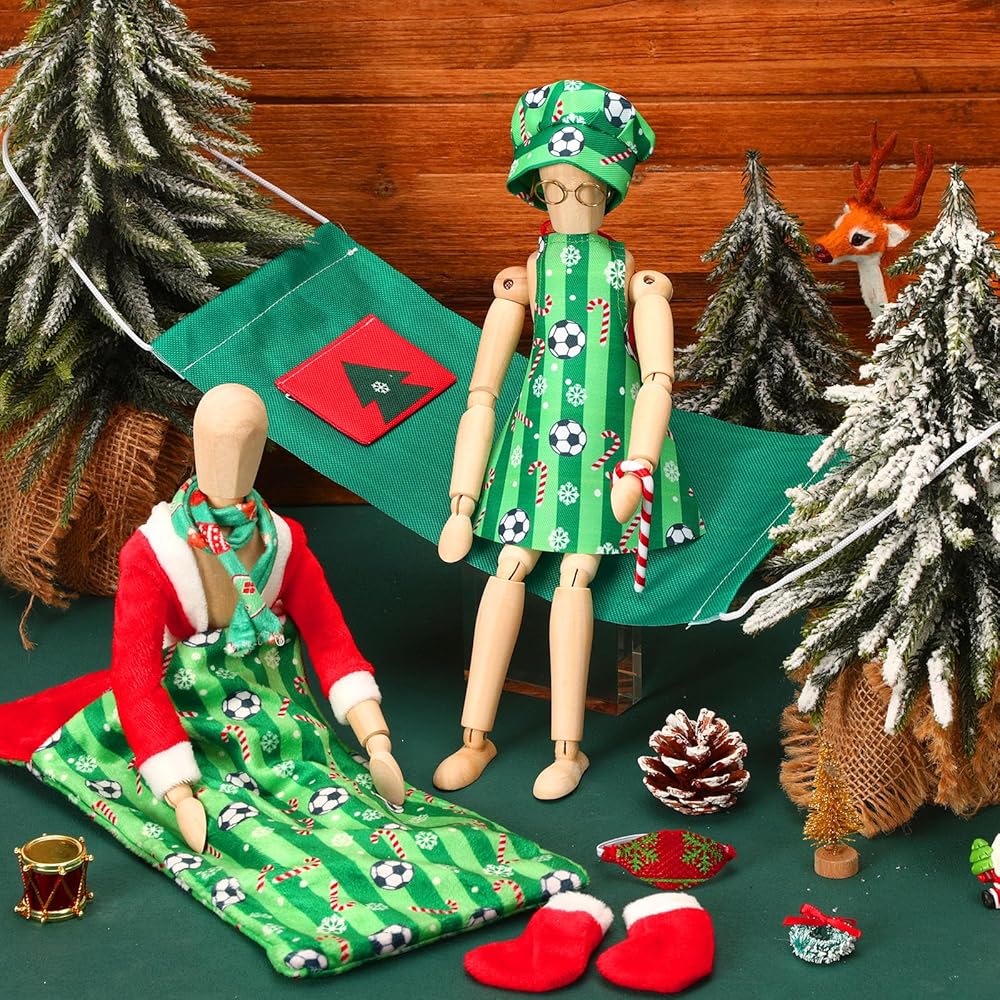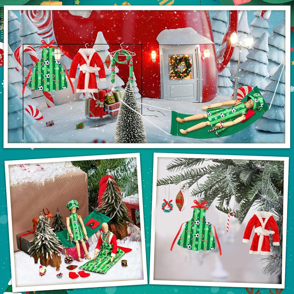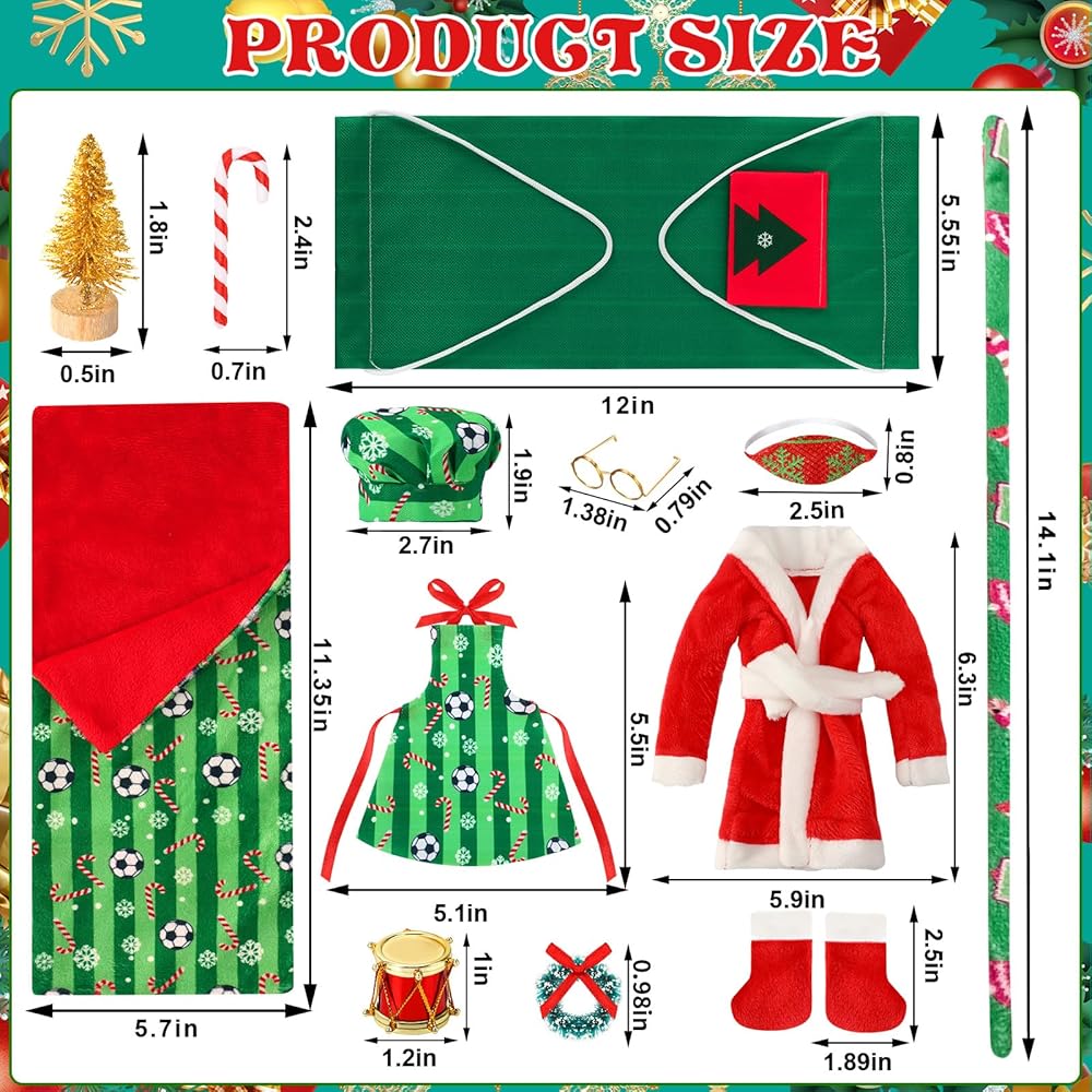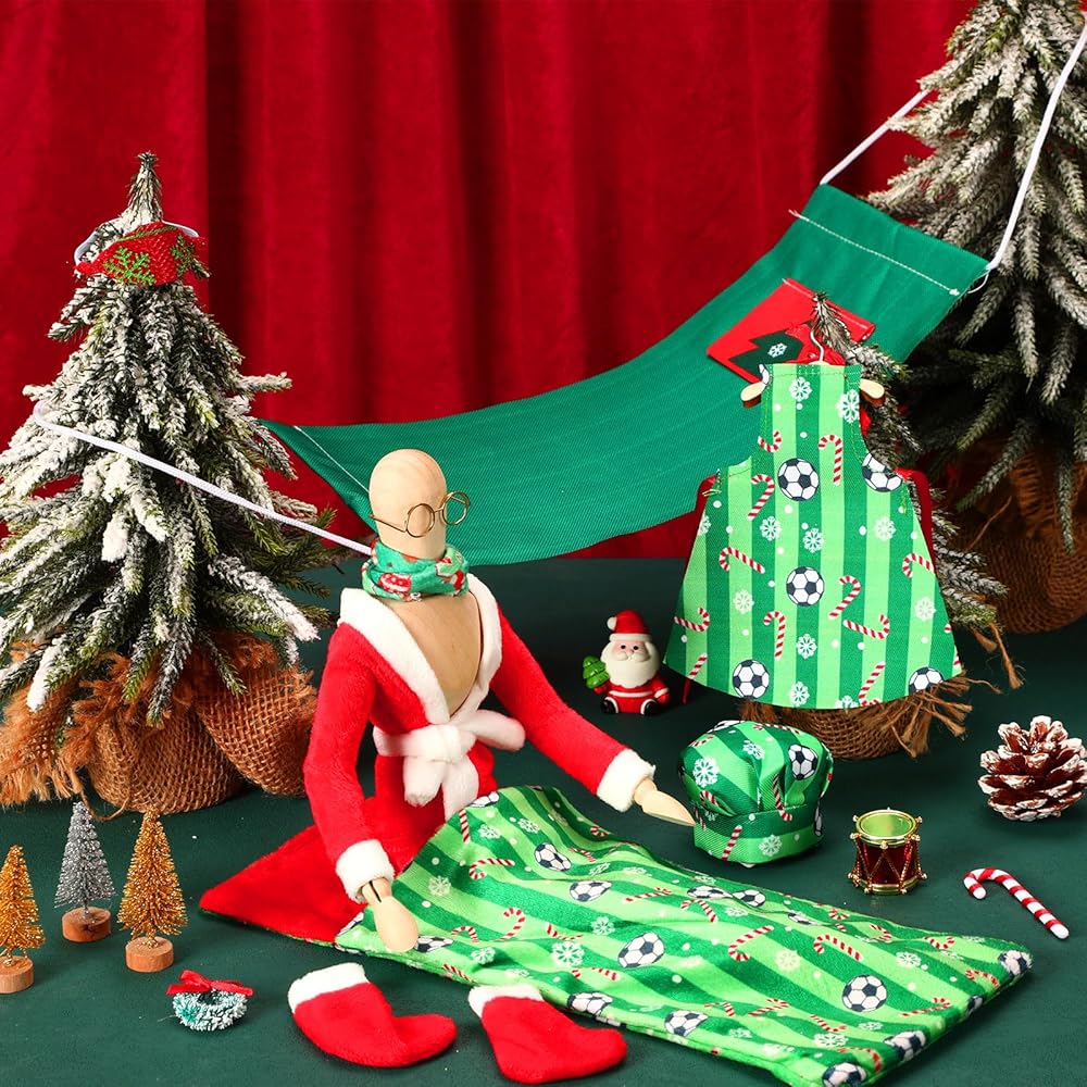 Rich Doll Accessories Set: You will get 12 pieces Christmas doll accessories, including hammock, sleeping bag, bathrobe, socks, chef's hat, apron, scarf, glasses and other accessories. The added Christmas tree ornaments add a festival sense.Christmas elf adventure kit is suitable for 11.5-12 inch dolls, can meet your doll decoration needs, and make your doll dress more colorful