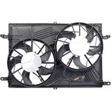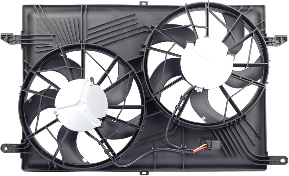 Specifications:Engine radiator fan assembly Specifications Blade Material-Plastic; Connector Gender-Male; Connector Quantity-1; Motor Type-Brushed; Shroud Color-Black; Terminal Quantity-1;Fan Quantity-2.