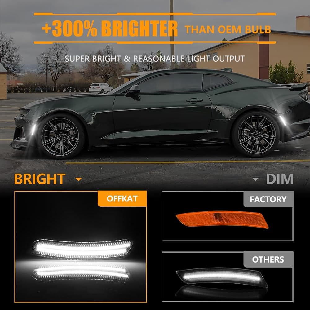 EXCEPTIONAL BRIGHTNESS & MODERN AESTHETICS: Experience unparalleled visibility with OFFKAT's high-performance SMD LEDs. Delivering 5x the brightness of traditional lights, they enhance safety and add a bold, contemporary touch to your Camaro. The highly light-transmissive PC lens provides a sophisticated look while optimizing light output.