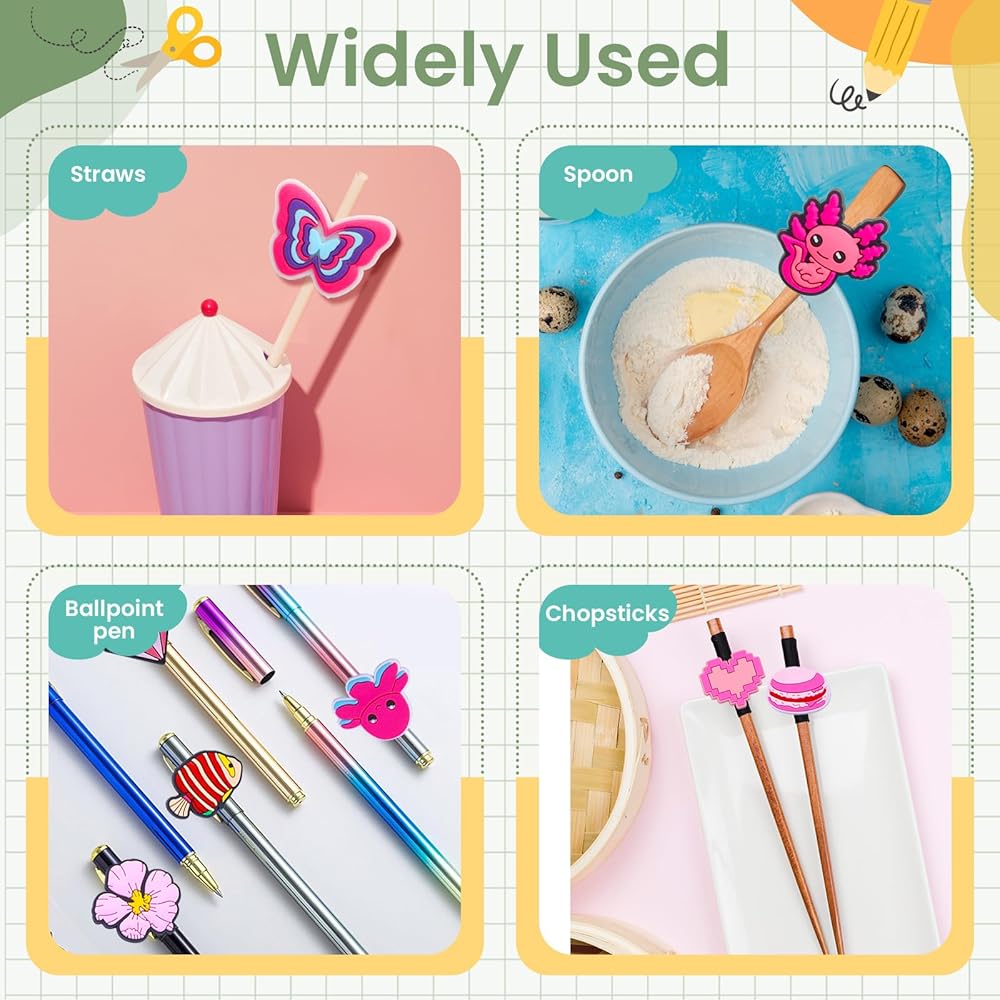 Practicality: The cute pencil toppers are not only suitable for the ends of most 7-12mm wooden pencils, but also fit 7-112mm drink straws. They are convenient and portable, making them ideal for use in classrooms, offices, libraries, restaurants, homes, as Christmas stocking stuffers, Easter egg fillers, and party favors.