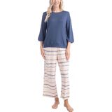 Stylish Details: Elevate your loungewear with the 2 piece set. Comes complete with ¾ sleeve t-shirt and relaxed, loose fitting flowy capri pants