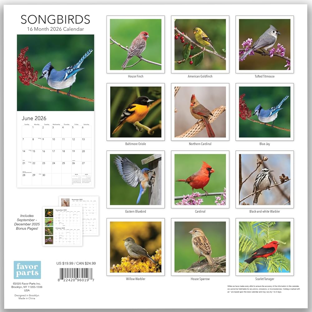 Songbirds Calendar 2026 - Hangable Wall Birds Calendar, Animal Calendar with Stunning Bird Photography, 12-Month Planner for Organizing and Planning, Ideal Gift for Birders, 12 x 12 Inches