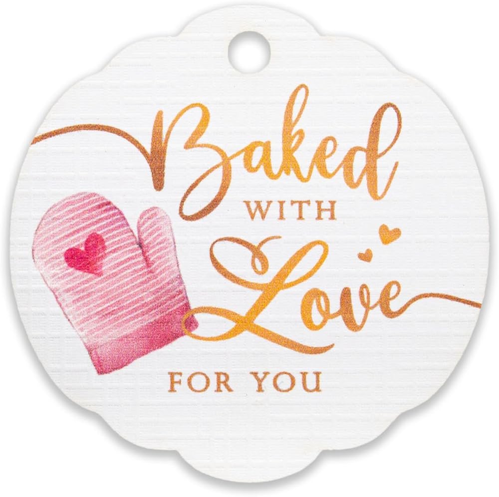 These "Baked with Love for You" gift tags are adorable tags often used for attaching to homemade baked goods as a sweet and thoughtful touch.