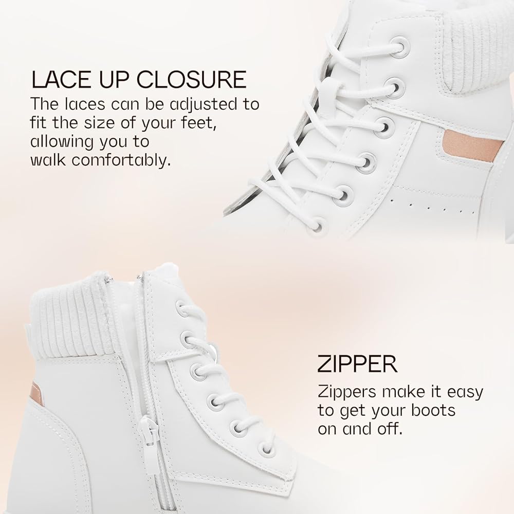 Easy to Wear: These winter boots for women are designed with a zipper and shoelaces which makes women boots easy to wear. Adjustable shoelaces will make your boots fit and feel better. You can also put on and take off women's boots with zippers. These womens ankle boots are made to be convenient for you to wear during a winter season.