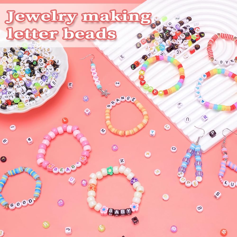【Colorful letters on white base】 The letter beads are all clear printed, you can make colorful necklaces, kandi bracelets, earrings and so on. It will be your very own meaningful design .