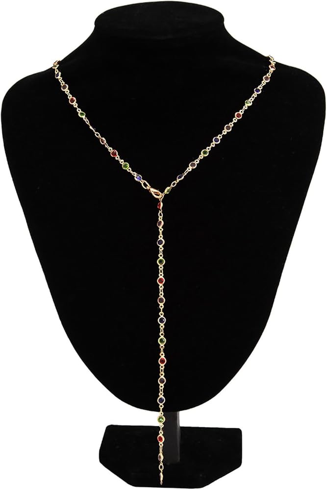 Gold Crystal Long Necklace,Summer Beach Crystal Bead Chest Body Chain Jewelry Bikini Beads Clavicle Chain Necklace for Women