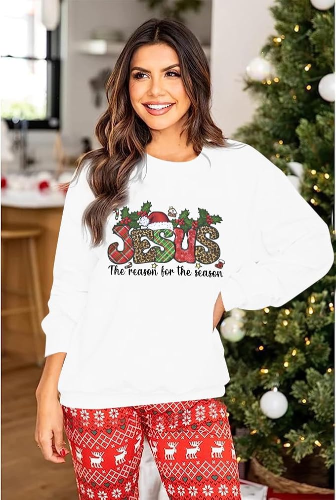 IDEAL GIFT CHOICE: Featuring a stunning Religious Shirt design, this Faith Shirt proudly displays the message that Jesus is the reason for the season. The Jesus Christmas Shirt is perfect for Christian Sweatshirt lovers, with a beautiful Christian Christmas graphic that's sure to turn heads.This women's Christmas sweatshirt with a religious theme is perfect for the season and a great addition to your wardrobe.