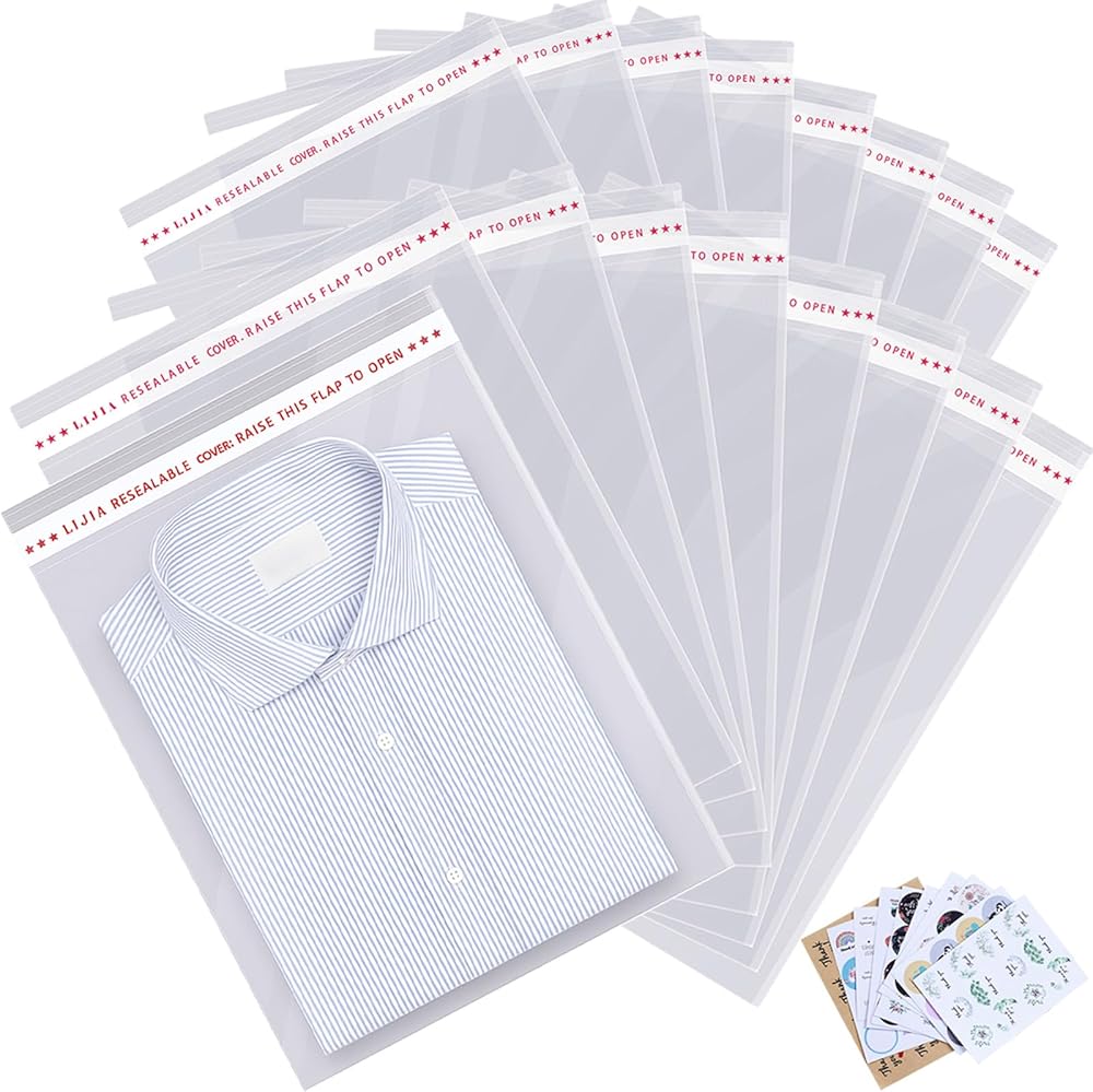 Measurement: Each of the large resealable cellophane bags is measured 9 x12 inches in dimension and 1.97mil in thickness. The great measurement that can fit well for clothes and gifts.