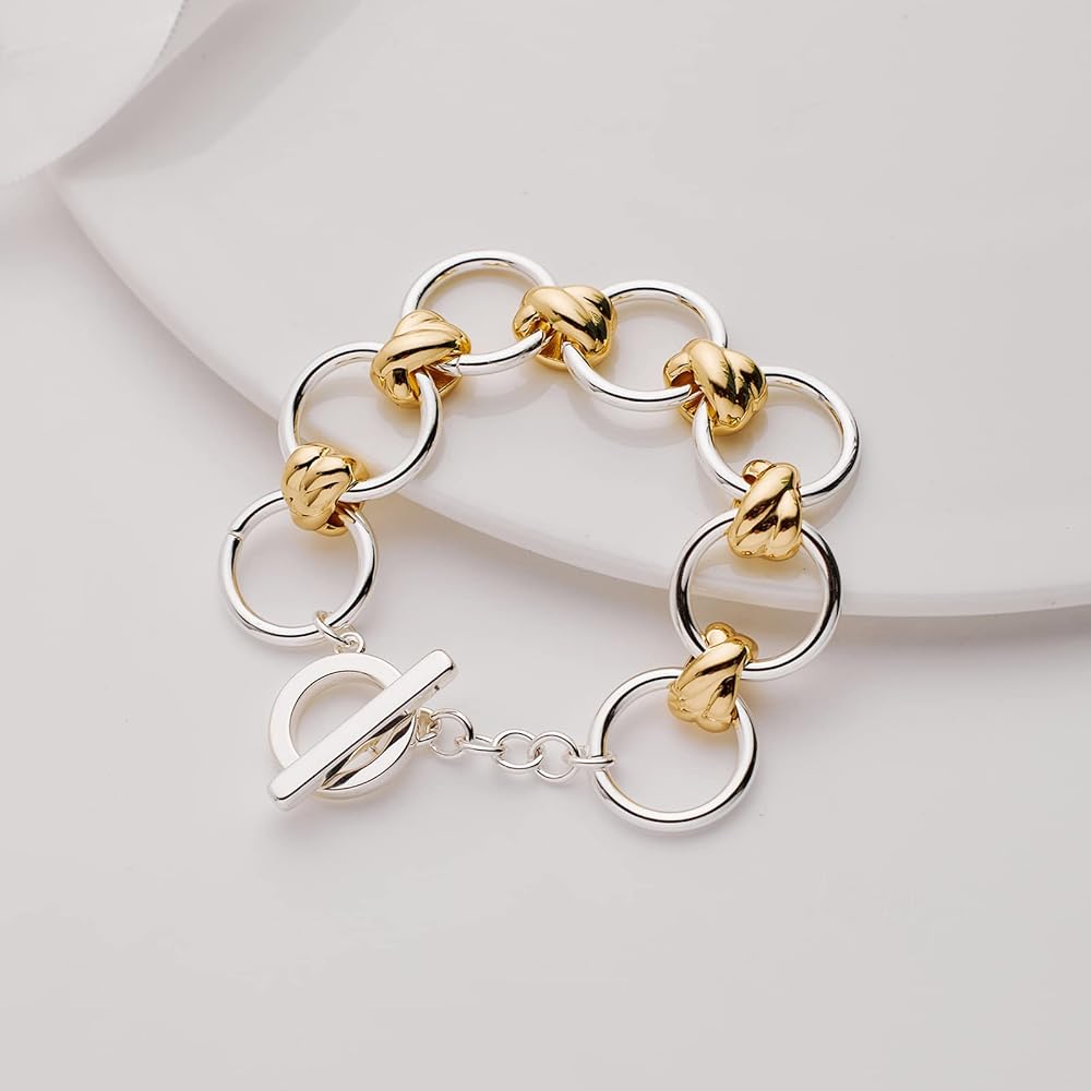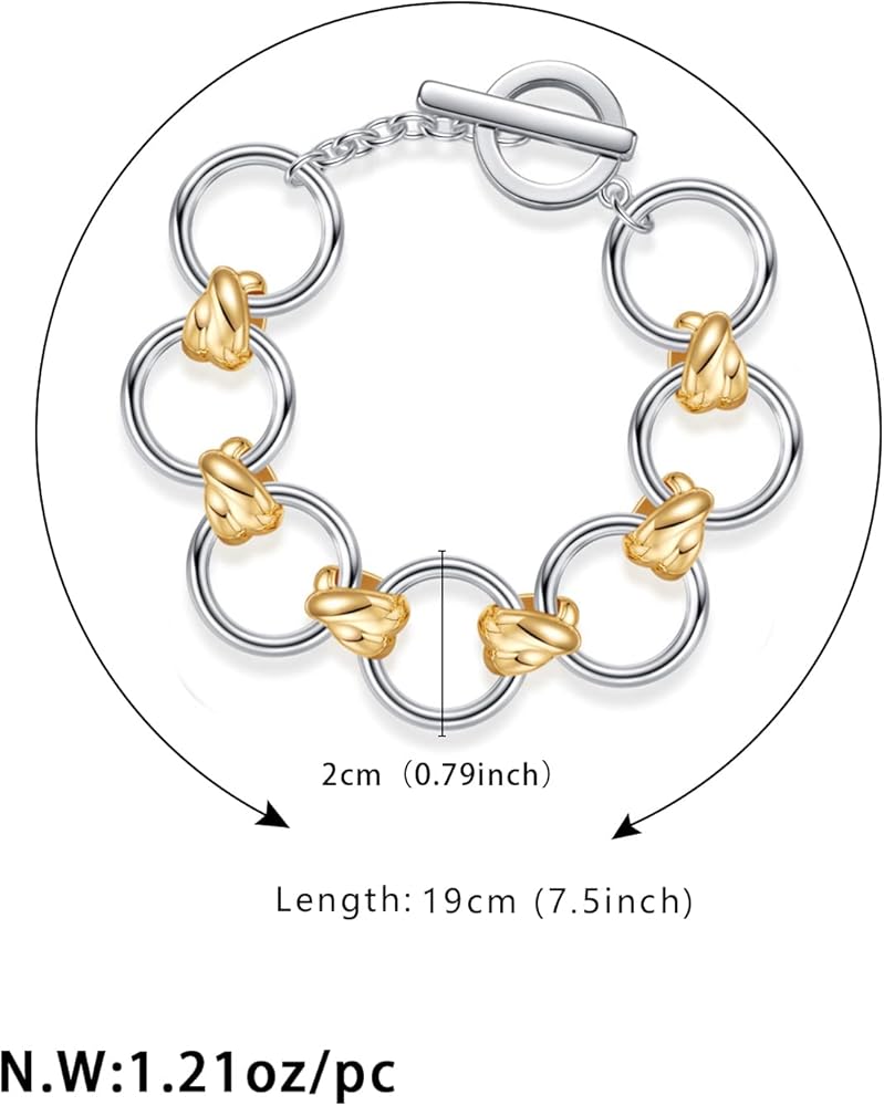 WOWORAMA Two Tone Link Chain Bracelet for Women Men Gold and Silver Paperclip Circle Link Bracelets Unisex Mixed Metal Bracelet Thick Chunky Chain Bracelets Fashion Jewelry