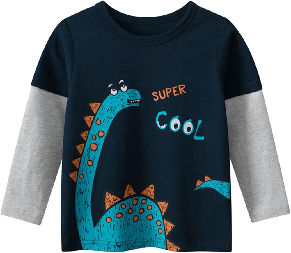 FEATURE:Our toddler long sleeve shirt are design with long raglan sleeves and vivid dinosaur pattern Printed,cute long sleeve shirts for boys with crewneck,cool toddler long sleeve shirt boy,Durable and warm enough to withstand a toddler's busy life in the fall.