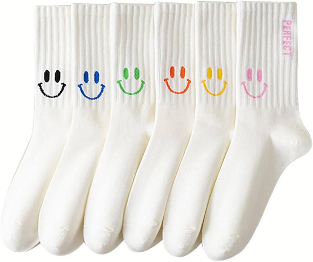 【Size】:Colorful smiling face casual socks,one size and unisex. Multi-color styles,collocation is easy,Suitable for all seasons.