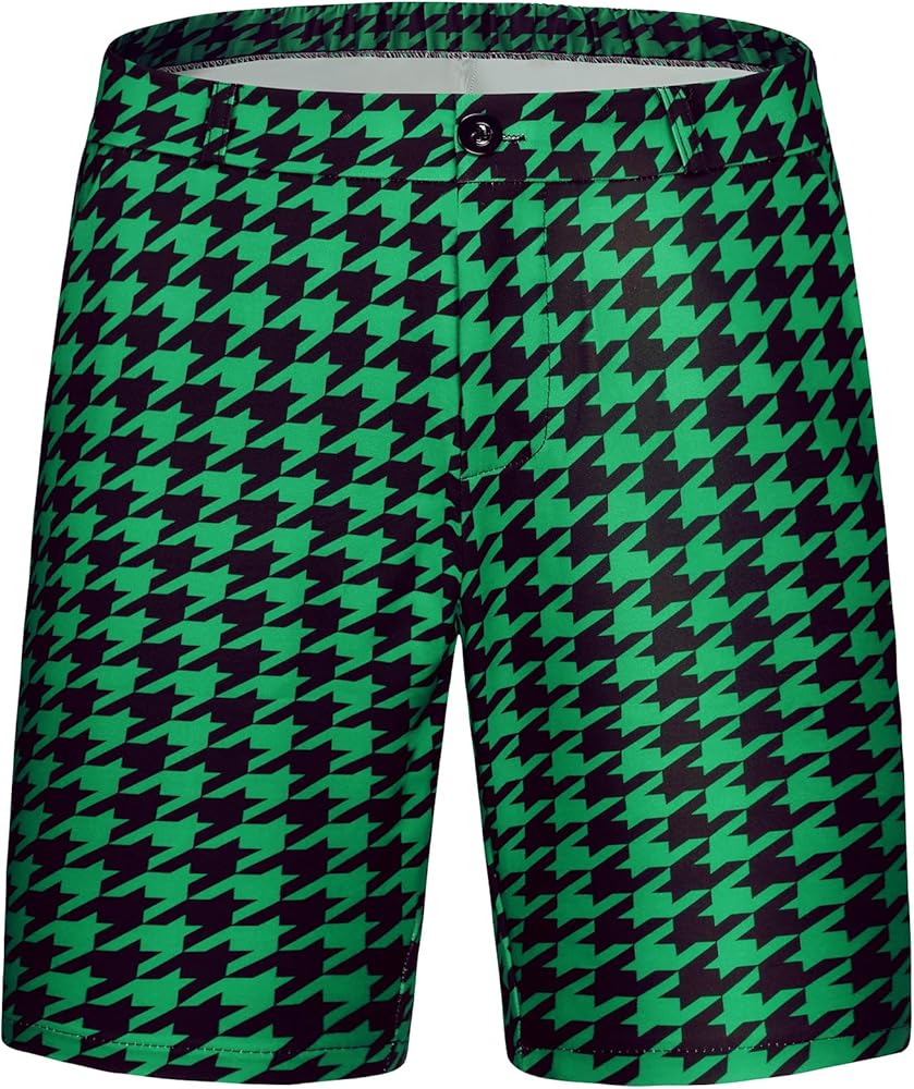 Lars Amadeus Houndstooth Shorts for Men's Flat Front Plaid Print Chino Shorts