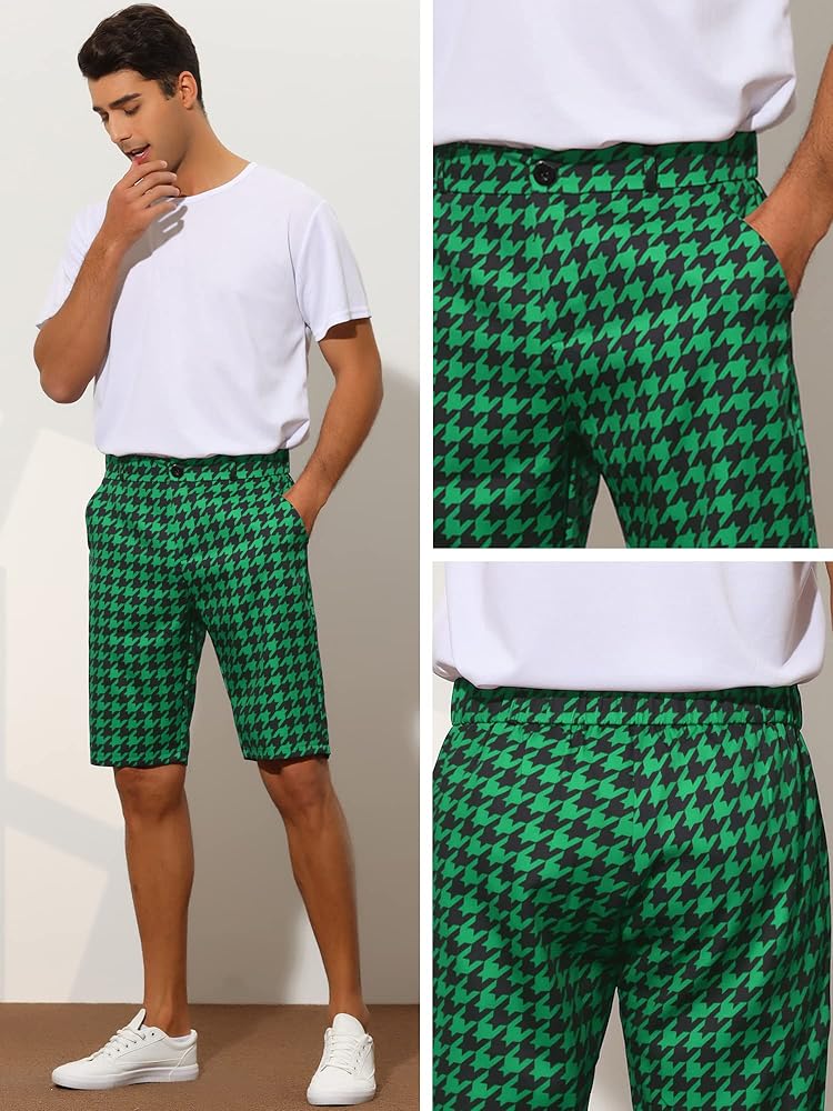 - 【UNIQUE DESIGN】Houndstooth print, regular fit, flat front, button closure, straight chino shorts.