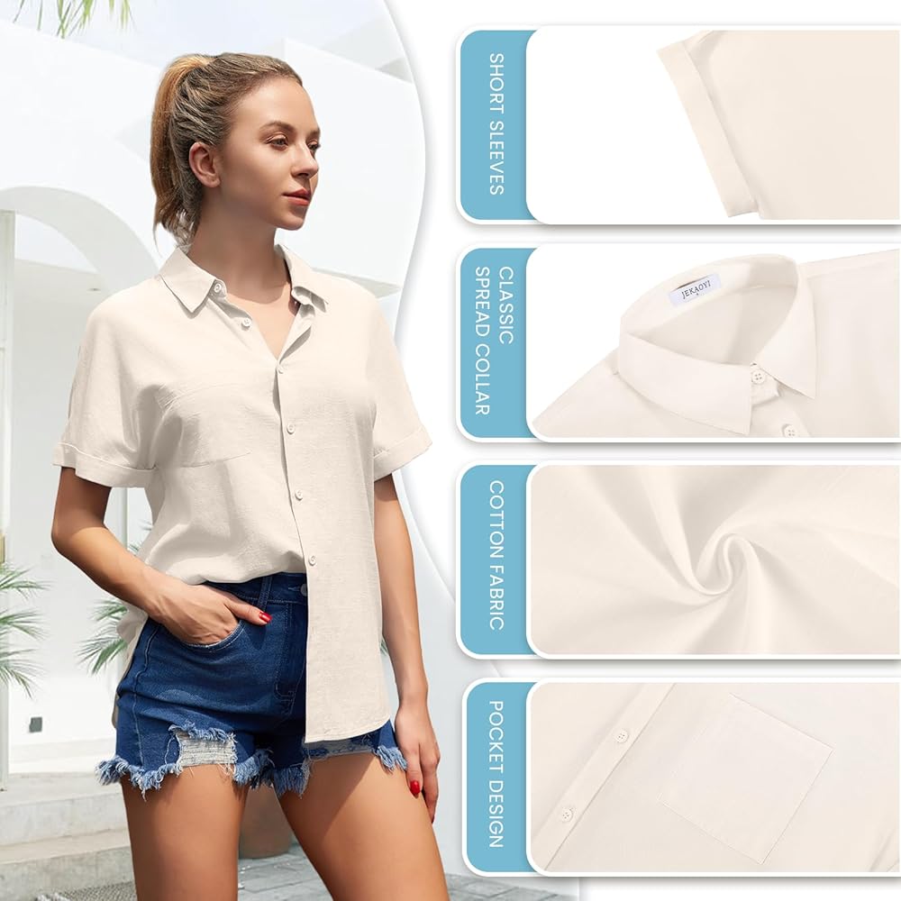 【COMFORTABLE FABRIC】: This women's casual shirt is made of high quality cotton and linen blend fabric. Skin-friendly, lightweight and breathable, perfect for hot summer.