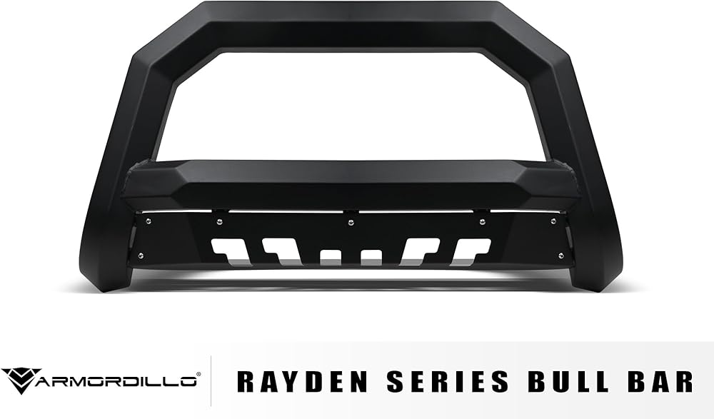Armordillo Rayden Series Bull Bar. If you're looking to protect the front end of your rig against the elements and impact of minor collisions without sacrificing the look of your new stylish front grille, the Rayden Series bull bar with its aggressive angular design is just the thing you need. Unlike regular tubular bull bars, Armordillo Rayden Series bull bars will not hide your front grille or a large portion of your front bumper, while keeping the front-end protection at a high level. Plus, the mesh styled skid plate doesn't restrict airflow to the radiator and engine preventing its overheating. Arm your off-road beast with Armordillo, an industry-leading manufacturer of top-of-the-line truck accessories and parts. Years of ingenious engineering and passion for the world's toughest trucks has been poured out into providing hardcore off-road products designed to turn your beefy companion into the embodiment of sleekness, edginess, and aggression. Armordillo offers bull bars, step bars, fender flares, truck bed rails, trailer hitches and some of its unique products – Pre-Runner bumper guards, AR drop steps, lockers, and bull bars. You can count on Armordillo to bring you impeccably strong and durable parts combining brutal appeal with high-end elegance. The brand's bull bars, grilles, fender flares and side step bars are a sure way to instantly give your off-road warrior a more sharp, mean look along with unmatched comfort and protection against the rage of the trails. So, if you are looking to improve your vehicle's stance and fortify its defenses to own the dust with confidence, Armordillo is the answer to all your needs.