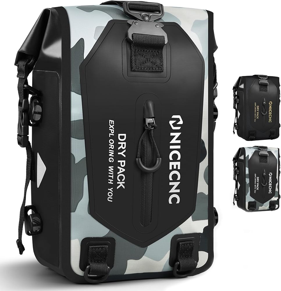 【IPX6 Waterproof】 NICECNC waterproof motorcycle backpack is made from PVC material, featuring PU waterproof zippers and voltage welding technology to prevent water from seeping in through the seams. IPX6 waterproof rating provides fully waterproof protection, keeping your belongings dry and safe even in heavy rain during your road adventures.