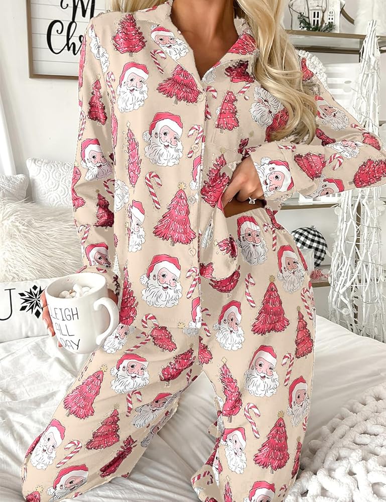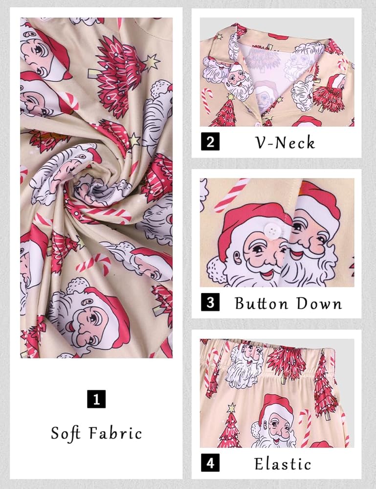 ❤【FASHION DESIGN】:Christmas pjs matching sets,two piece pajama set,long sleeve sleepwear top and long pajama pants set,christmas print design,chest pocket,buttons which is easy to put on and take off,making it perfect for nursing your newborn at home,pajama pants waistband are stretchy for a better fit,body size and makes relaxing as comfort as possible.