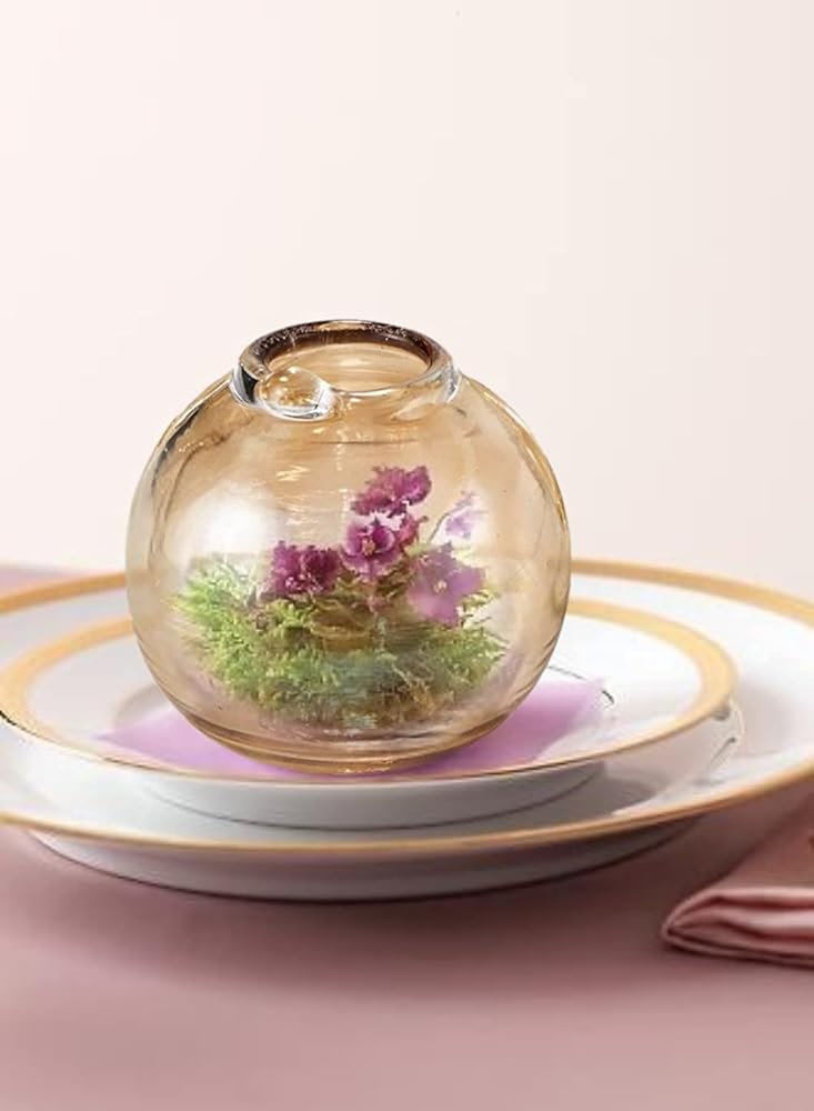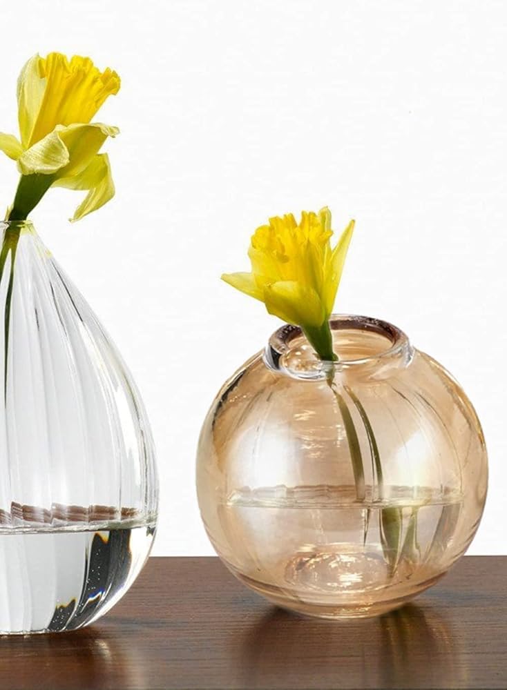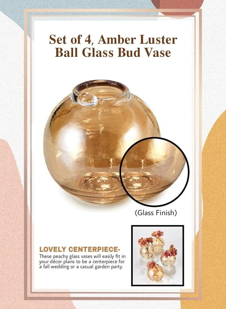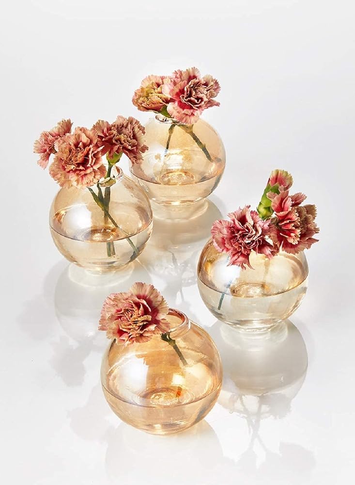 Serene Spaces Living Set of 4 Amber Luster Ball Glass Bud Vase, Short Vases for Centerpieces for Home Decor, Events, Weddings, Measures 3" Tall & 2.75" Diameter