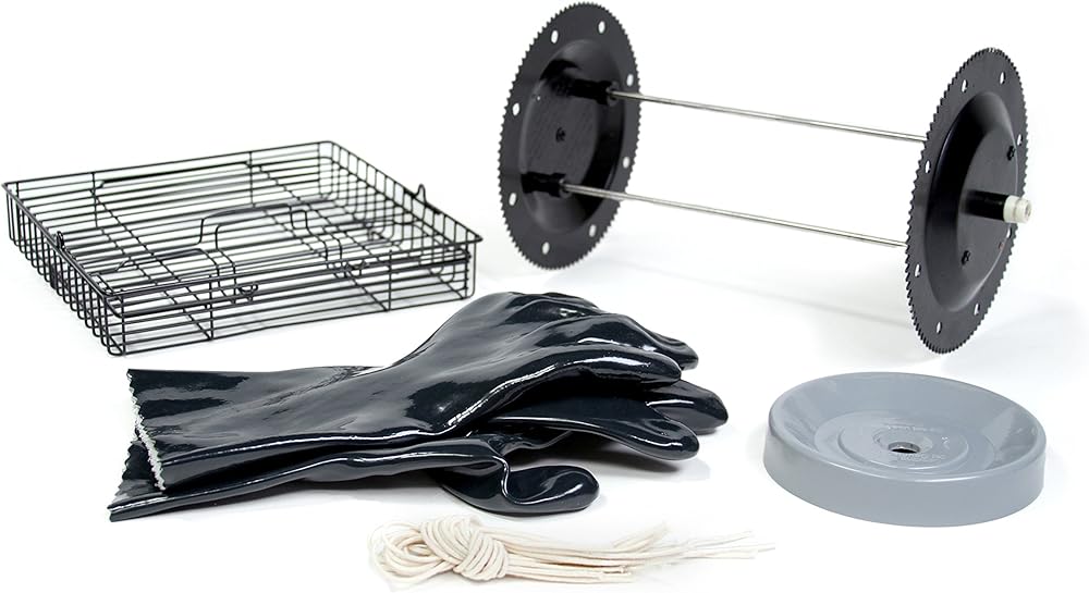 Accessory Kit Included – Nonstick Rotisserie Basket, Nonstick Drip Tray, Grate Cover, Food Ties, Carving Base, Gloves and recipes
