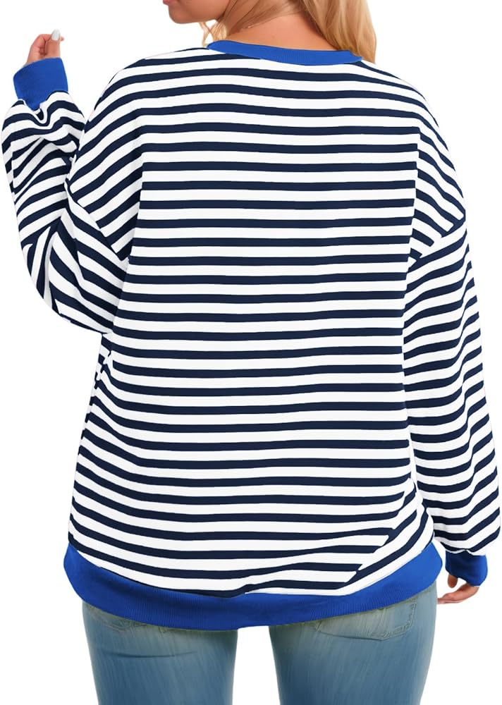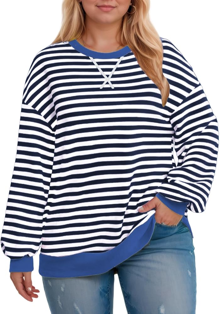 Chic Design: Plus size trendy sweatshirts feature cute crewneck, with stripped color block design, bright color will bring you the cheerful mood and good luck all day