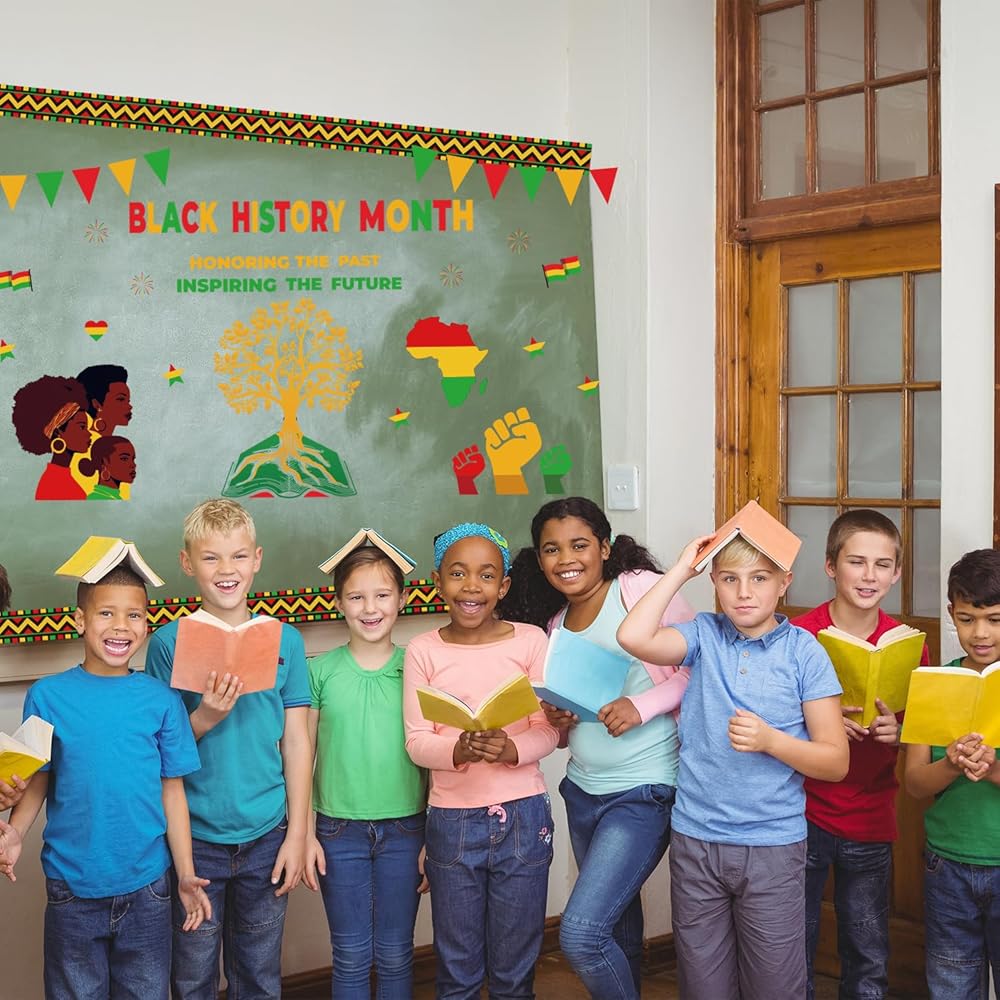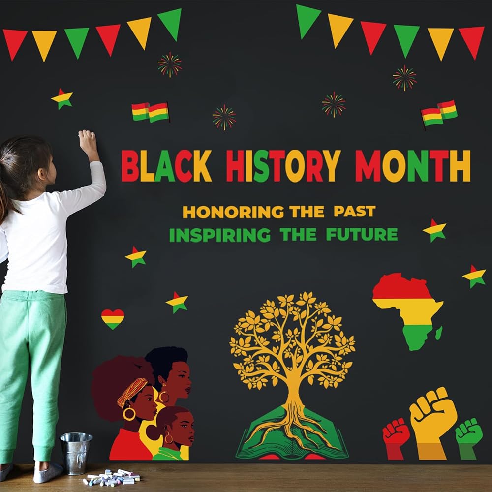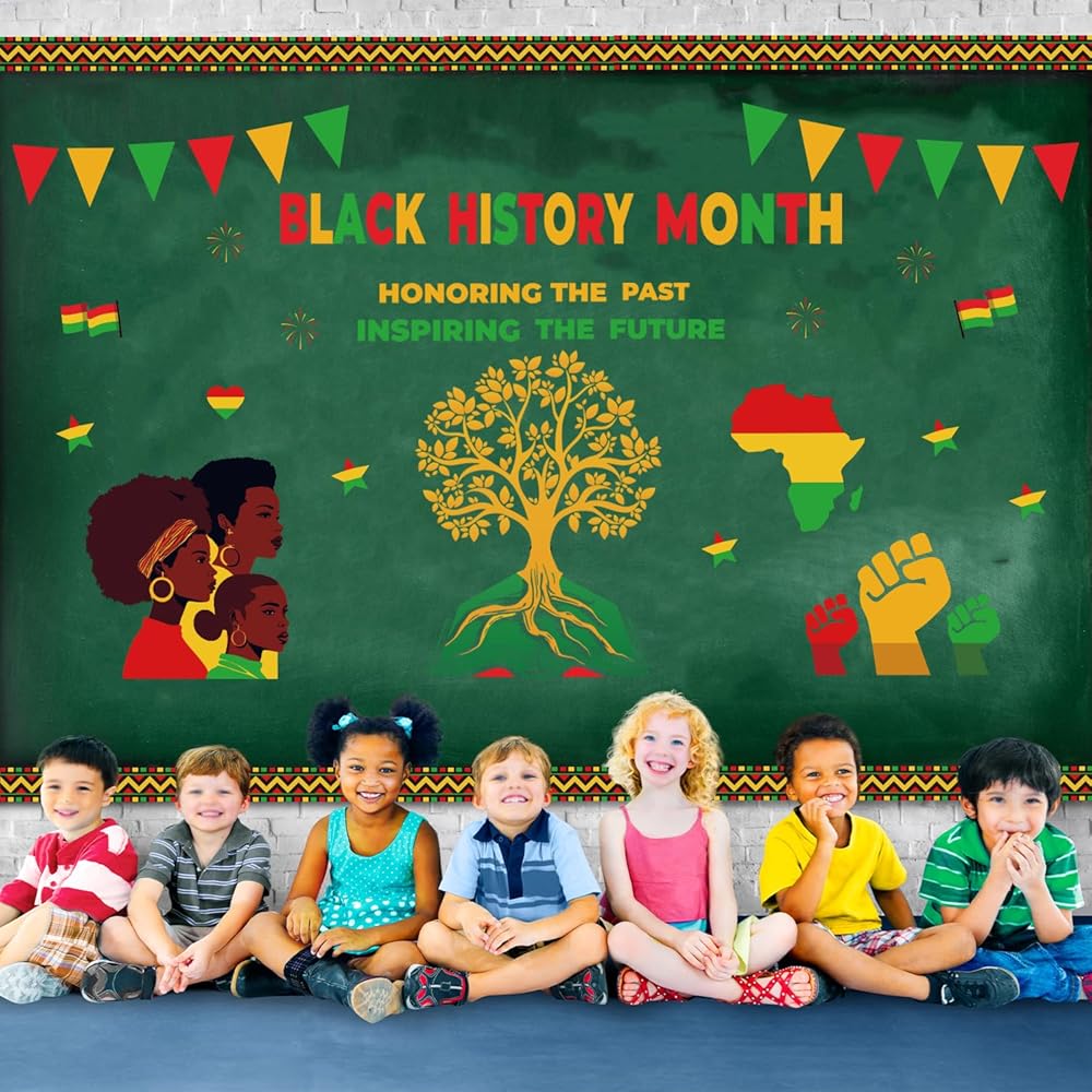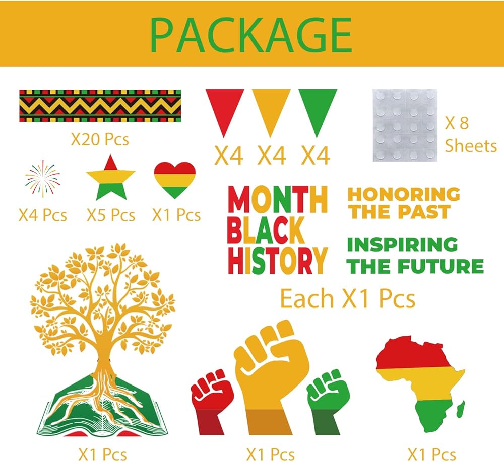 Black History Month Bulletin Board Decorations Set, Black History Month Inspirational Borders Cutouts for Classroom Home Chalkboard Wall Door Decor African American National Holiday Party Supplies