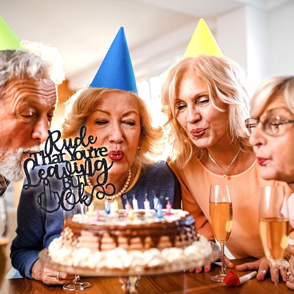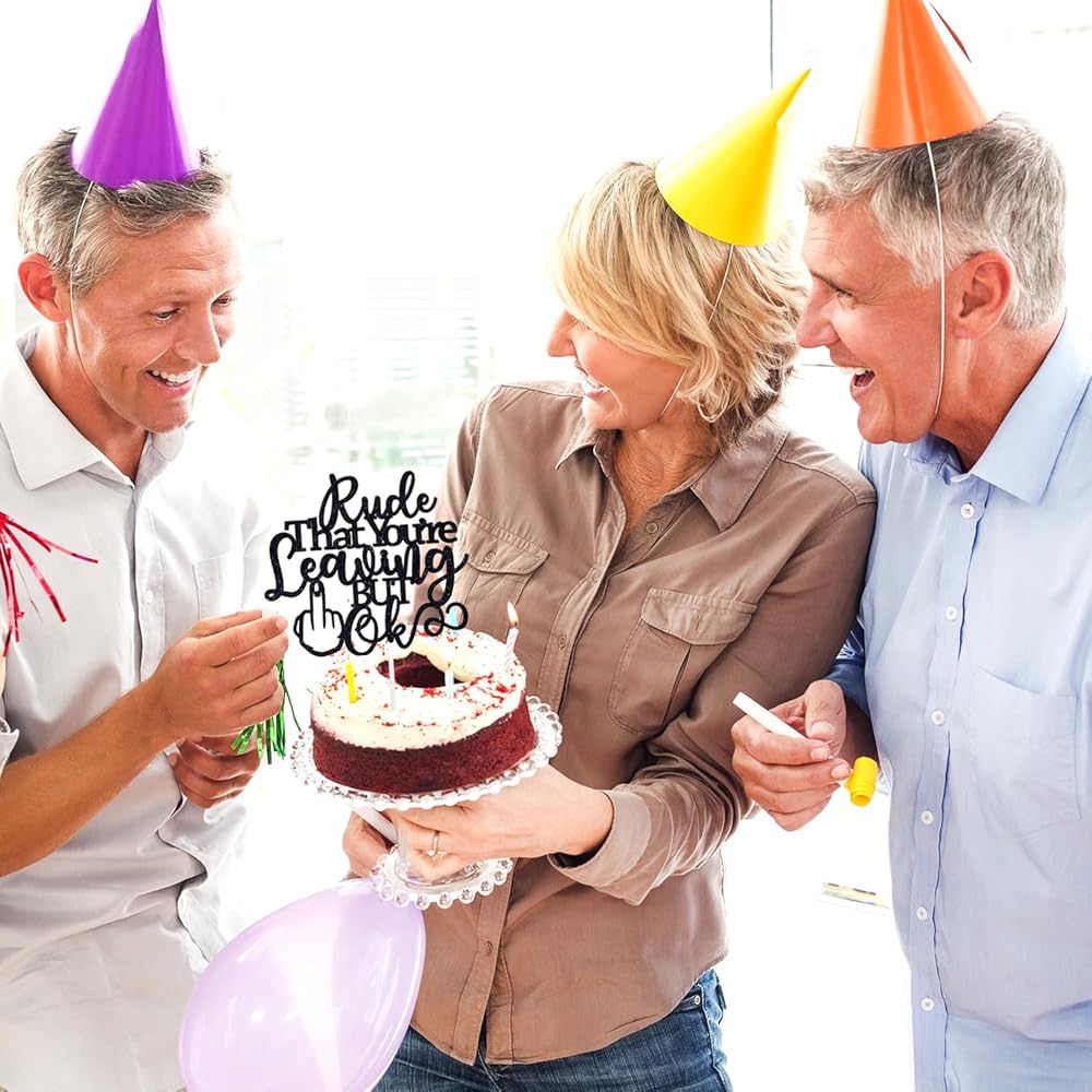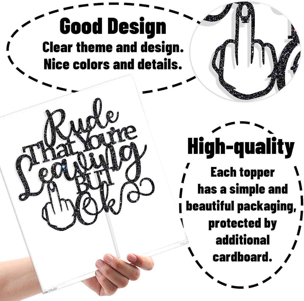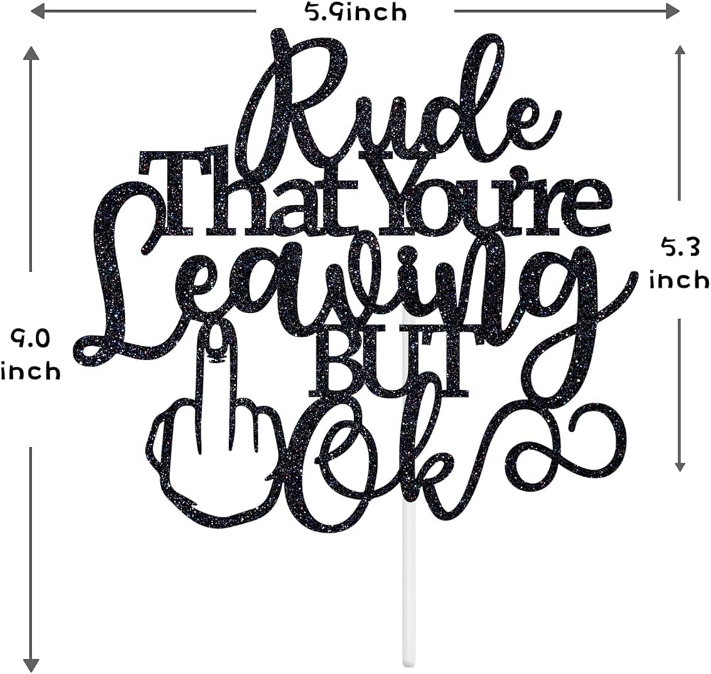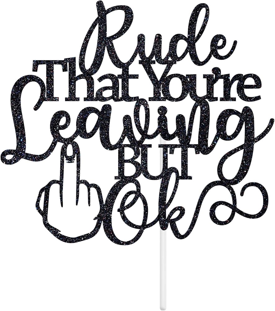 Aeryourtar Rude That You're Leaving But Ok Cake Topper, Coworker Leaving Cake Décor, Office Coworker Goodbye Party/Going Away/Leaving Job/Happy Retirement Party Decorations Supplies, Black Glitter